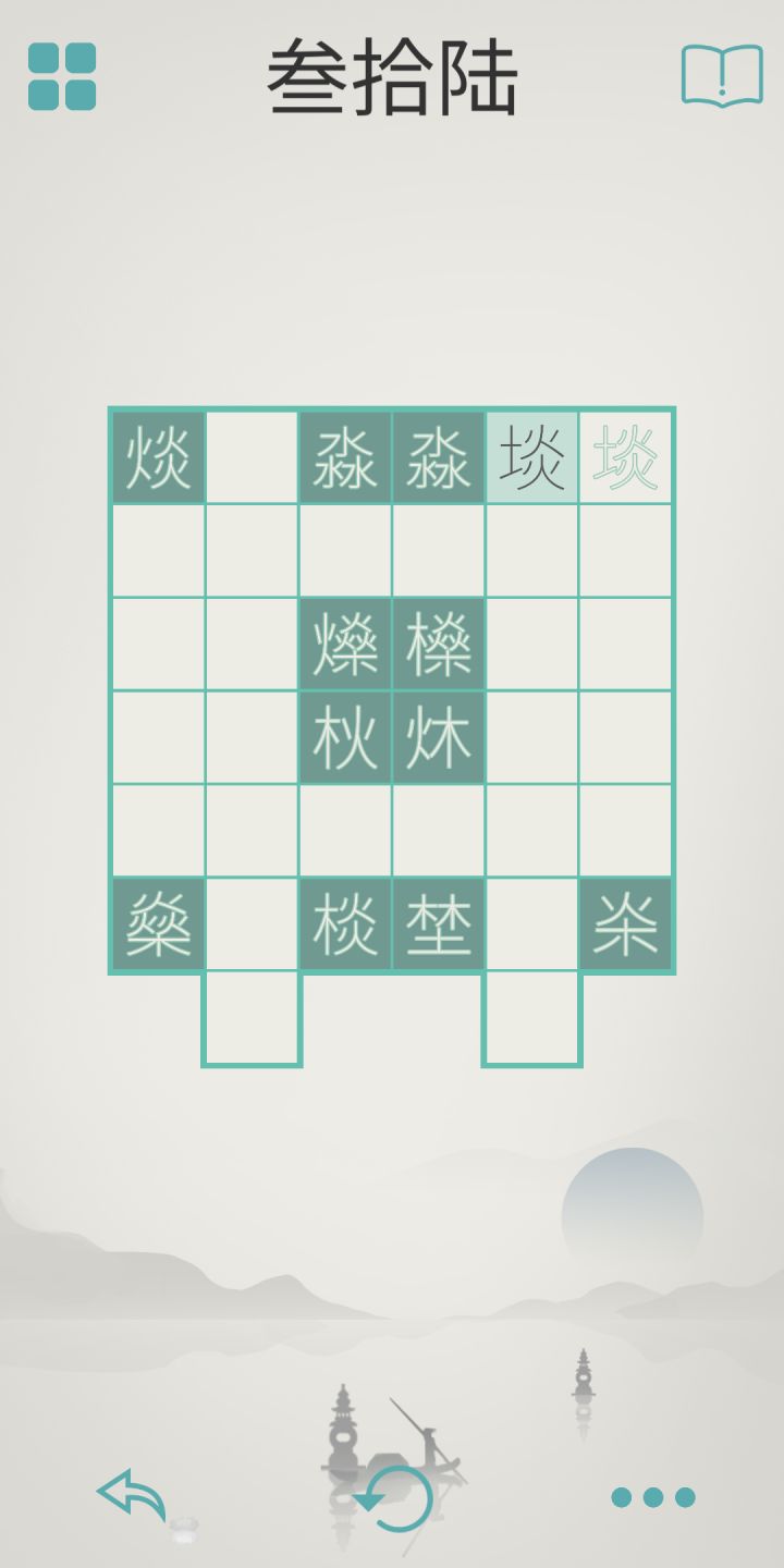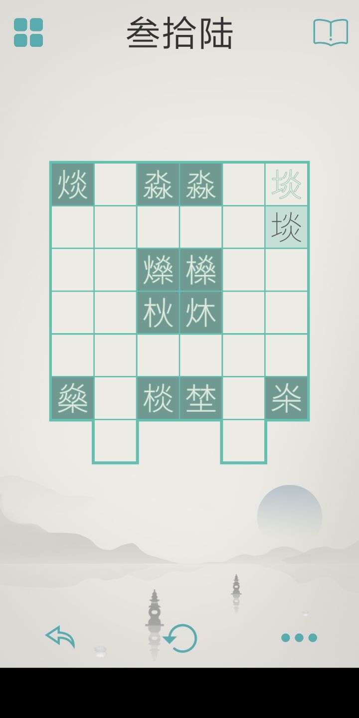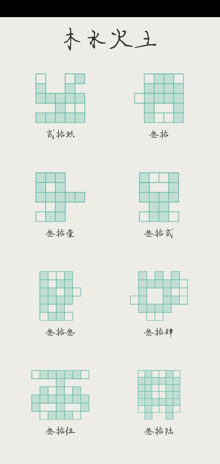 感觉稍微需要点思考,不能浪费的字得保留住,有的关卡字会有剩余,有的刚好够,最后一关,3个木必须留着,一个都不能用,俩个土,第一次自动只能用一个组成,另一个尽快组成土炎,火木只能有一个,如果不小心组成一个以上,就只能重来。。。或者看广告,水的话别让分开的俩个水组在一起。不然就只能重来或者悔棋