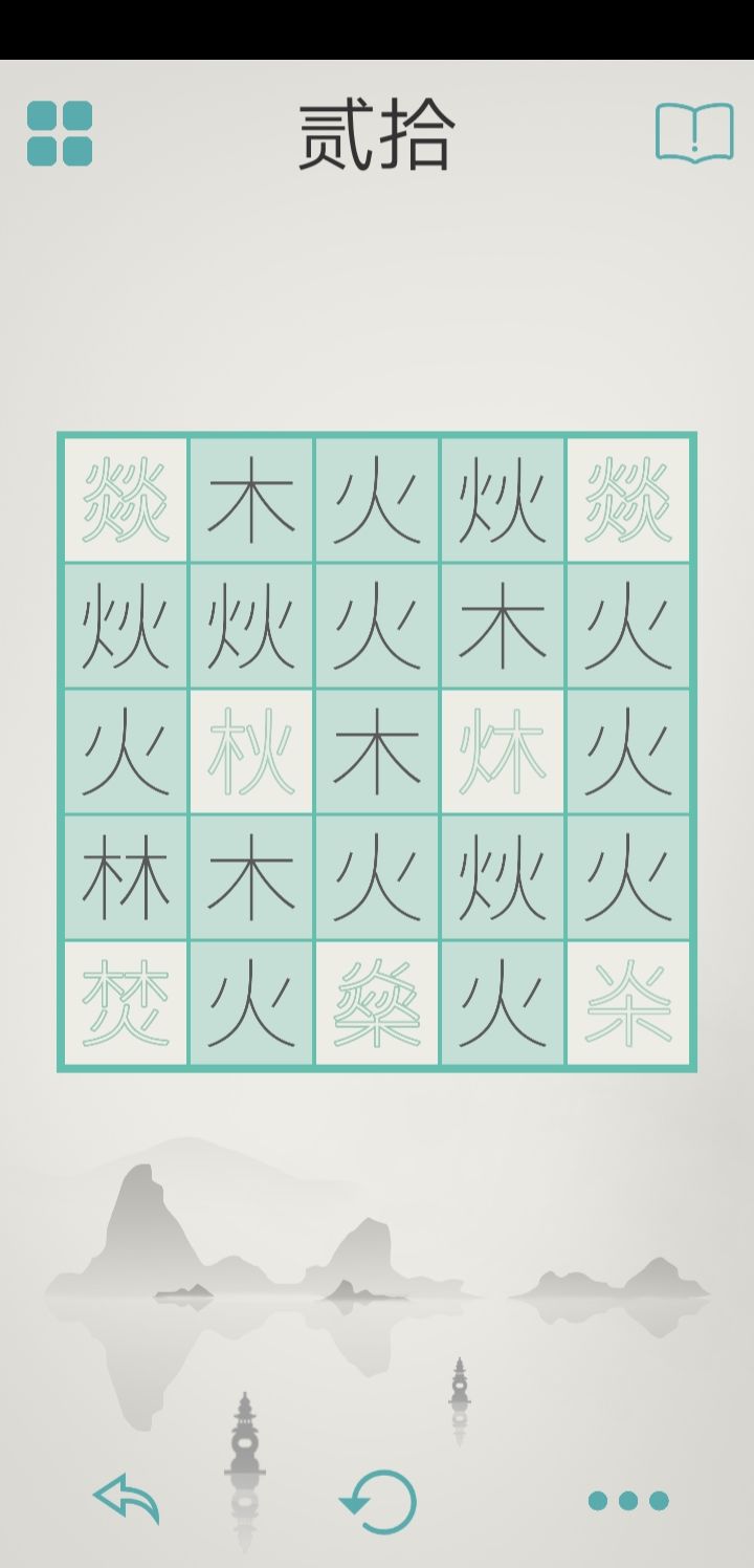 后面的关卡需要查字的数量先查给定的字里一共有多少个木多少个火…再查可移动的字里有多少木多少火…对比相差多少 哪些可以合并哪些不可以就都知道了