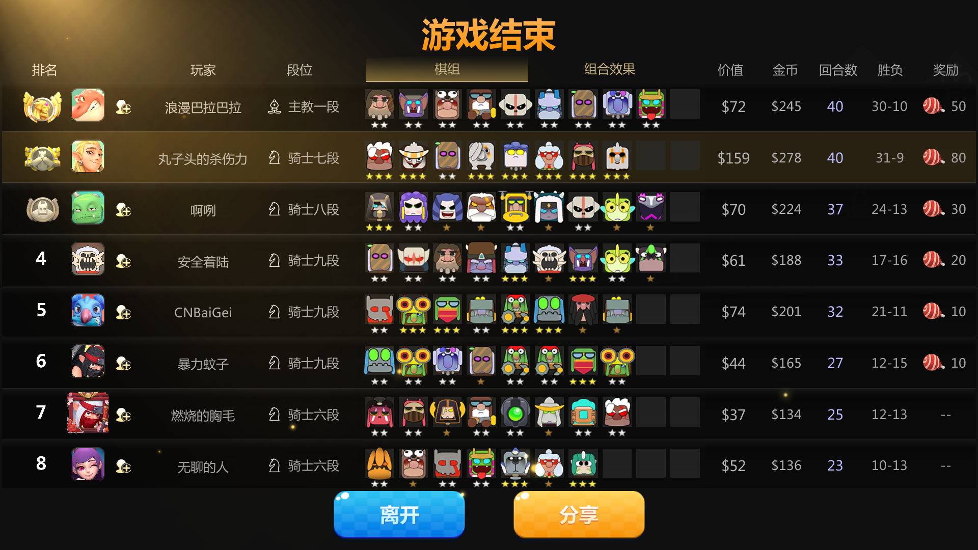 这是公平游戏永远都是别人的运气那么好 自己玩什么阵容都打不赢别人 充钱的永远都是最厉害的