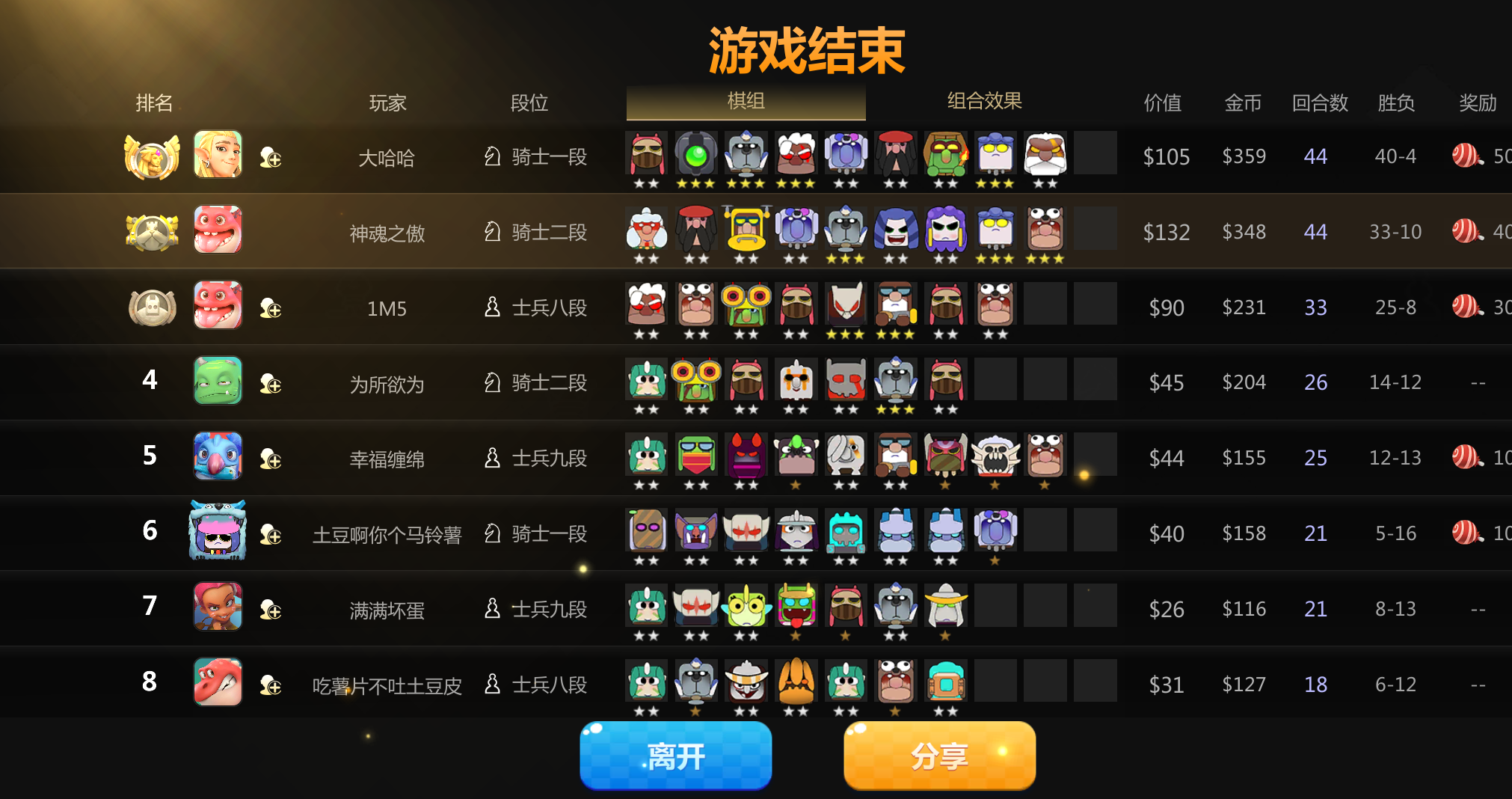 最后只剩我和第一名对抗,他有60血,我有30血,想玩精英战。我有时看着打过他了,剩几个棋子活着,他却不掉血,为什么?