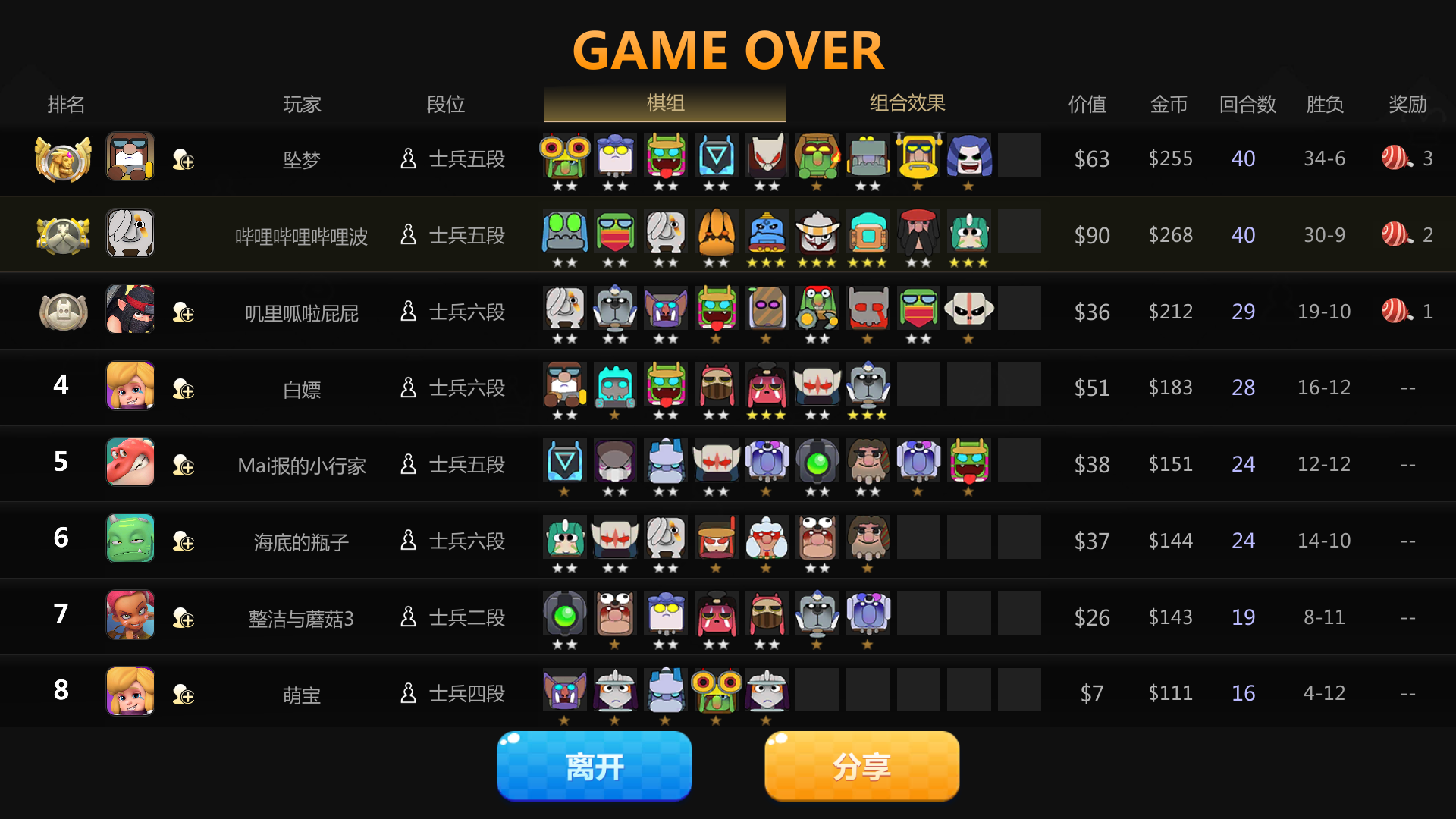 对面这个一星炸弹人把我满血的3星前排直接炸死了,这真不知道怎么回事,我看了下技能结束可以炸1000,我tm3000多。。这么久没了