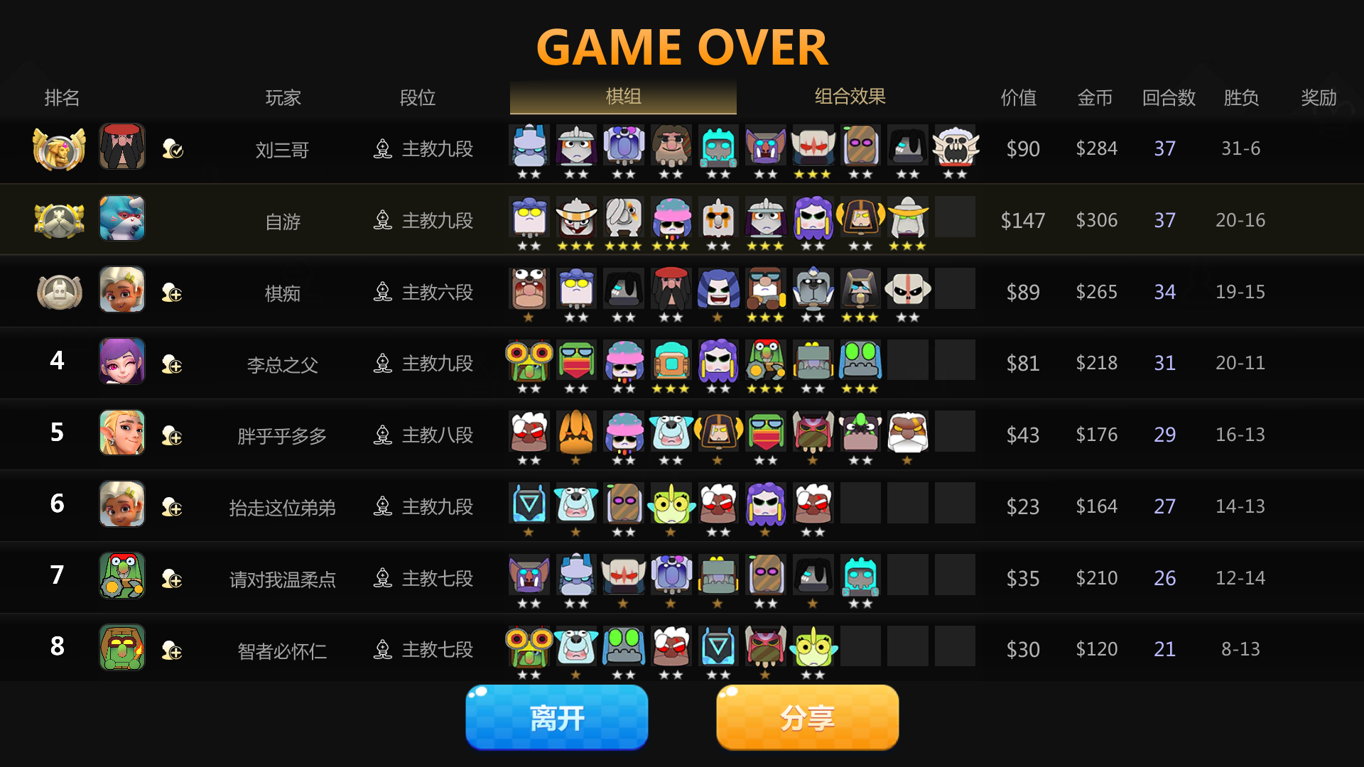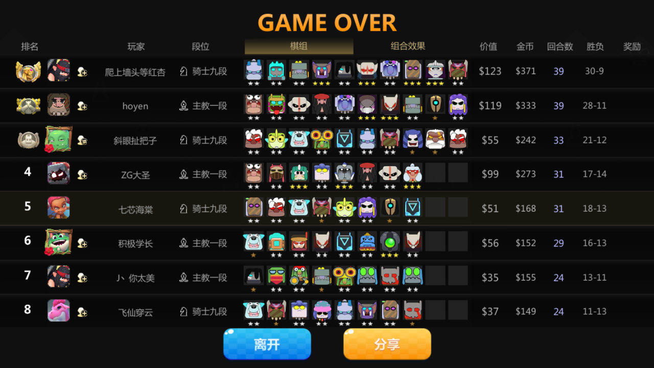 我是第二名,最后就剩我和第一名了,前面几回合,三星夜行者一回合砍9000+血,带了疯脸和金箍棒,一回合入第一名十血以上,最后一回合,我的夜行者只砍出了2300+伤害,对面一个人没死,我十八血直接被秒了。最后一回合看她砍龙骑,龙骑直接砍出变身,剩三百血左右就砍不死了,而且六光的闪避几乎没出现,满血直接被吐死!