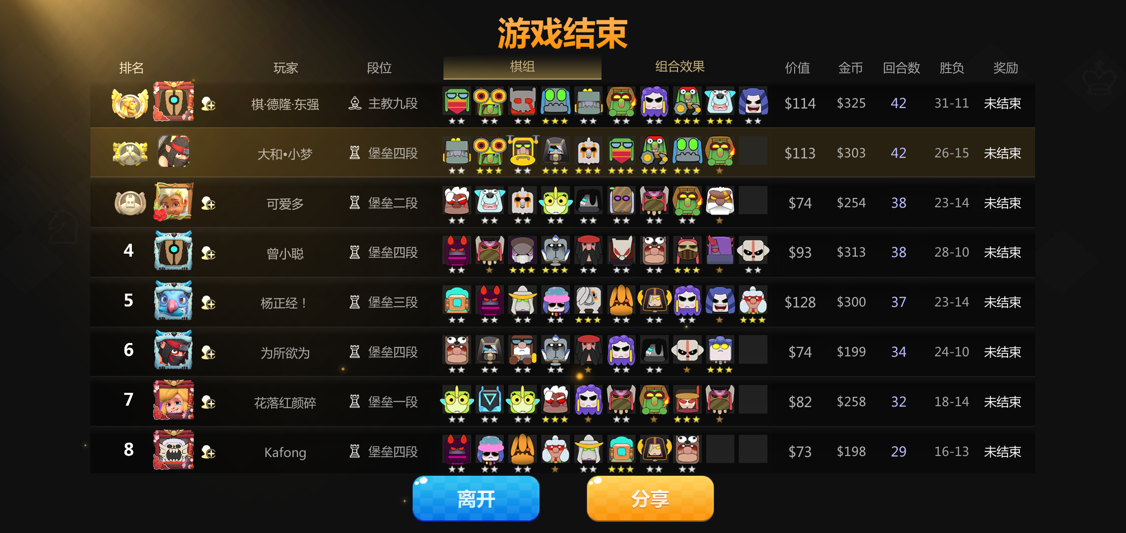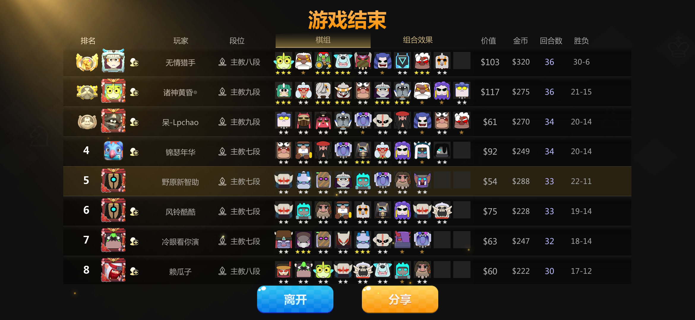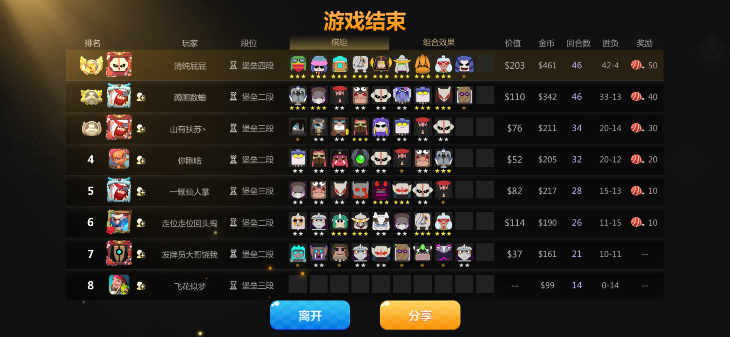 最后两6哥布林大战,我明明最后10个人补起打赢了,4滴血获胜,但战绩显示9个人还是第二名,最后我补了个一星剑圣,最后没钱。。。。真是bug!!!!!!!!!