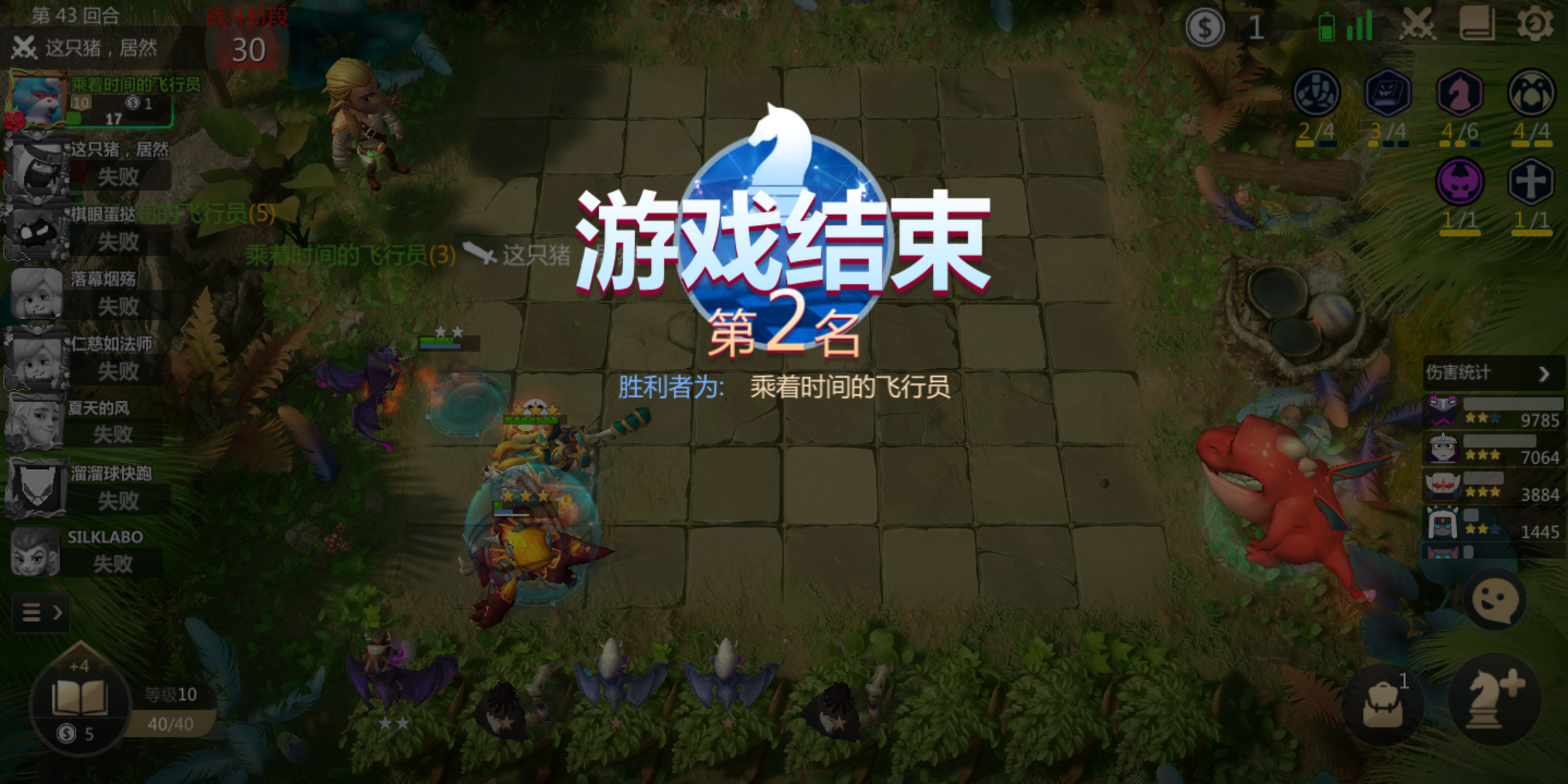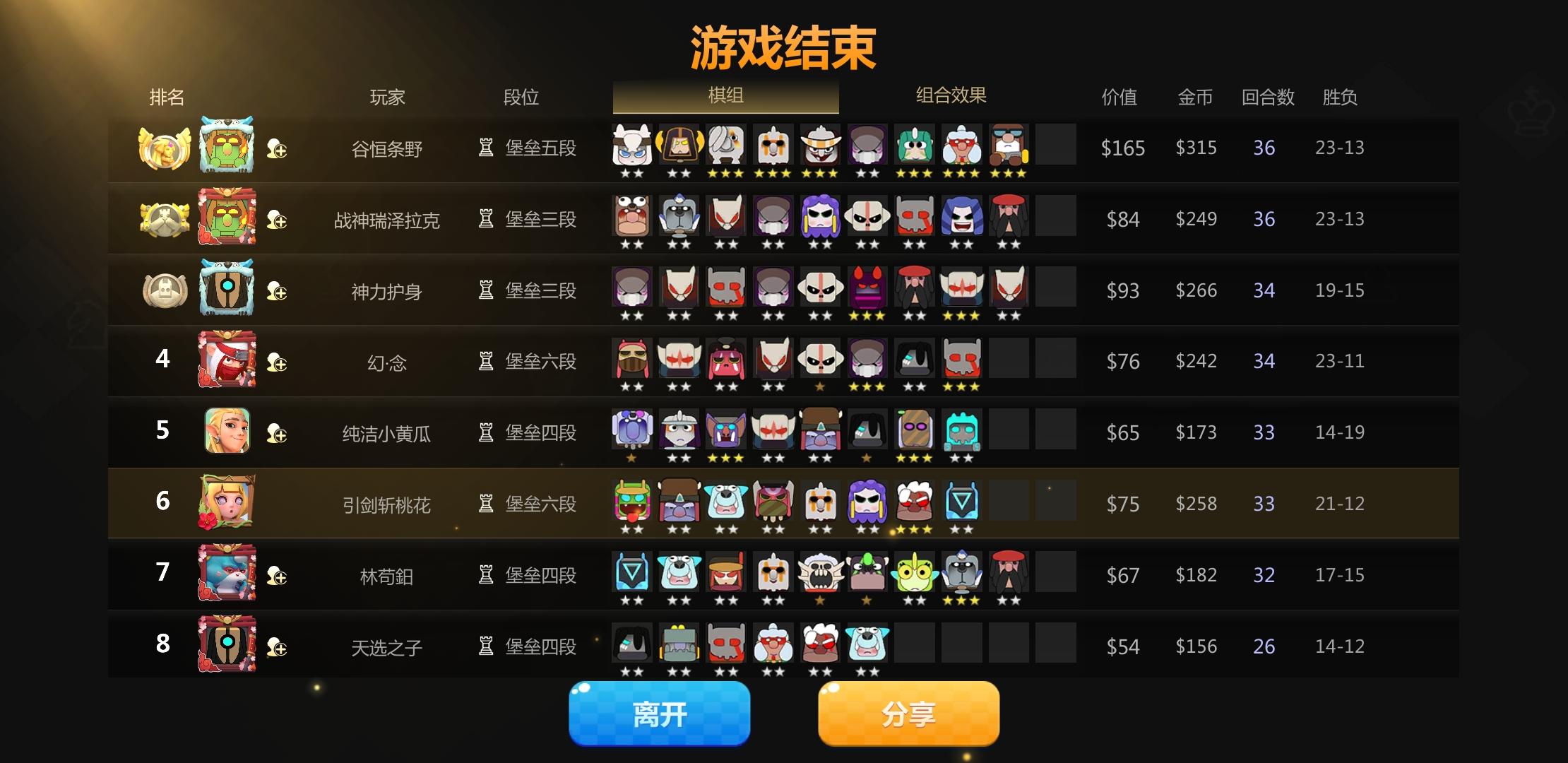 9人口神法,缺个雷神,排名第二,刚刚进33回合直接秒退给我结算好,扣了26分掉堡垒五,我都懵了,不知道怎么一回事,巨鸟多多欠我26分🤬🤬🤬🤬🤬回合开始也是9人口的,现在回去看战绩,少了一个2星雷灵