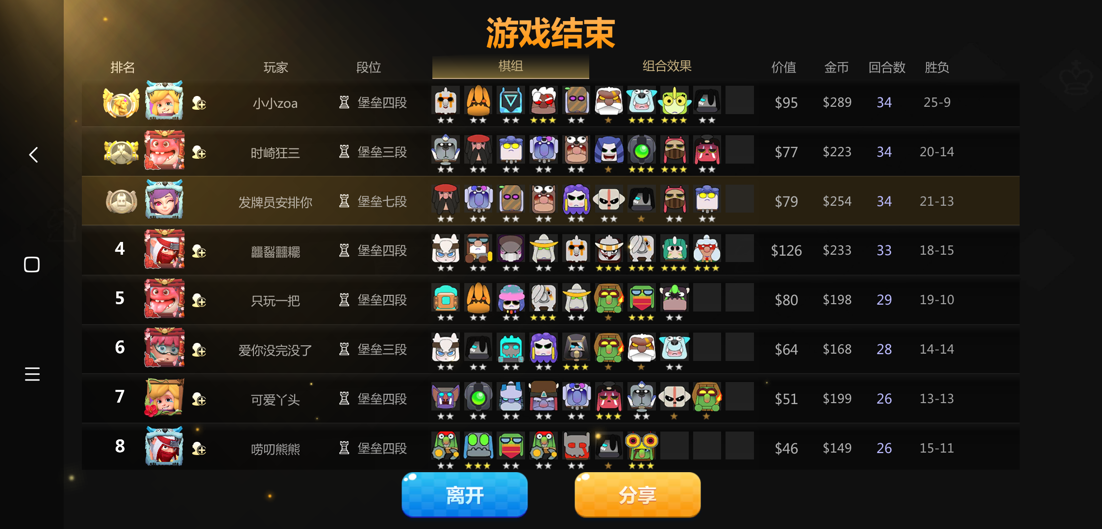 前二十回合爹妈全三星,以为天胡,结果被后期神法恶心死。后期成型的神法太无解了,希望有个阵容能克制一下