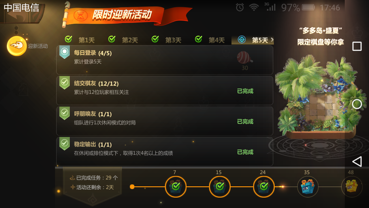 建议加快游戏节奏,一是加快战斗速度,二是可以增加新功能,在倒计时处增加准备结束按钮,当八人选牌结束,全部选择准备结束按钮时,直接进入战斗。