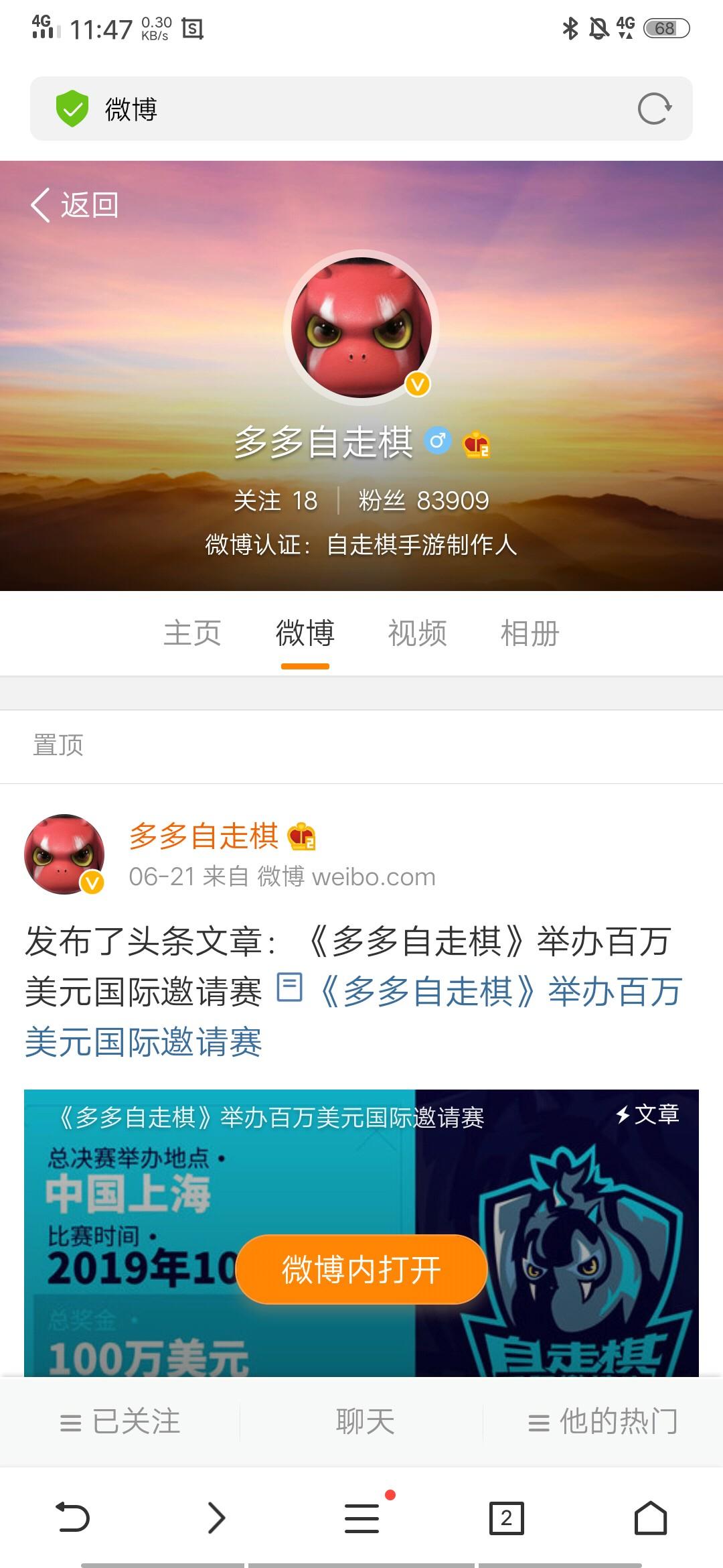到网页,点关注不行。跳转到微博APP,跳转失败,重新下载微博,还是不行。ID:CU5IR。