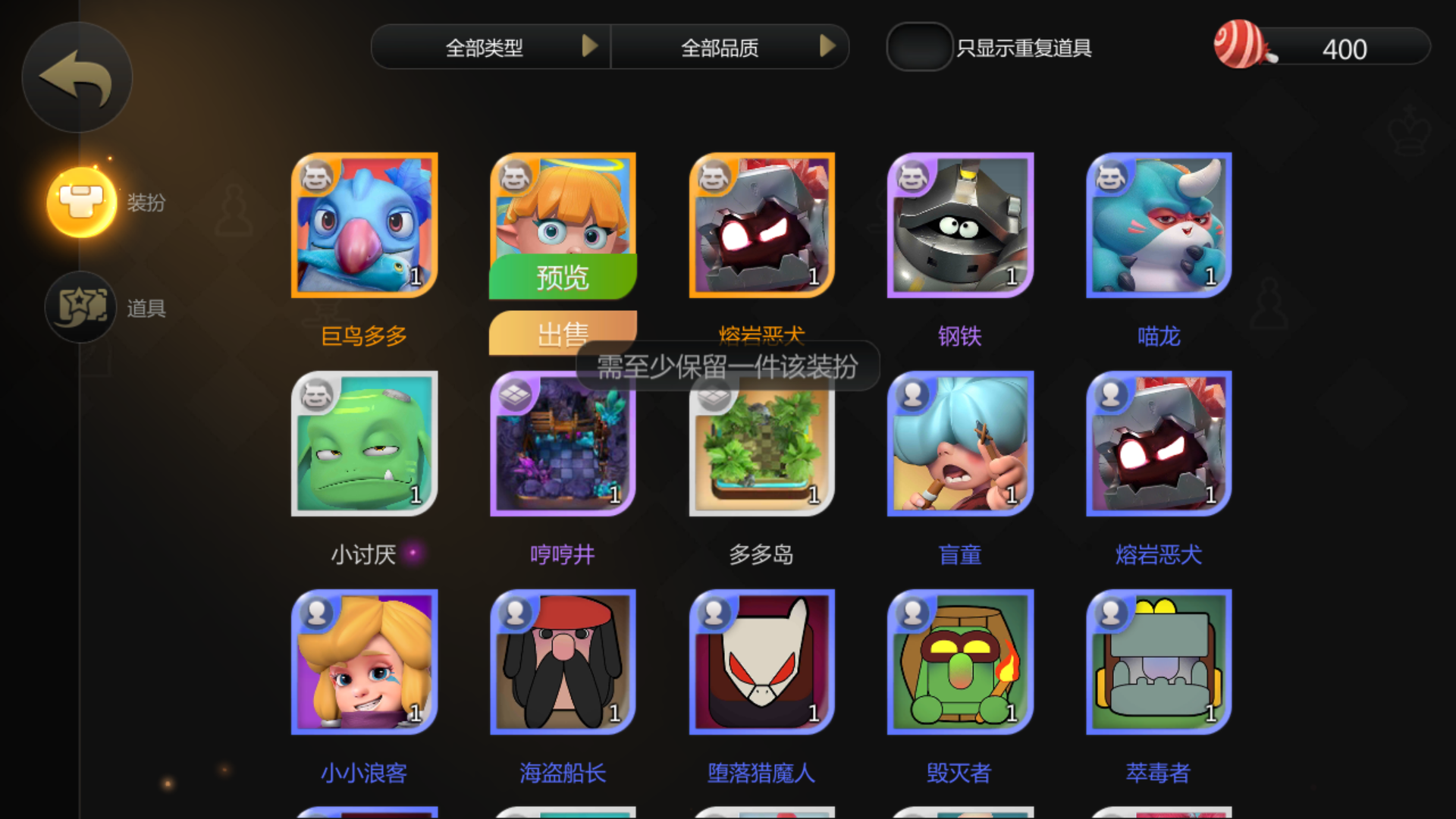 仓库物品不可以出售是什么意思。须保留一件相同的,什么情况啊?