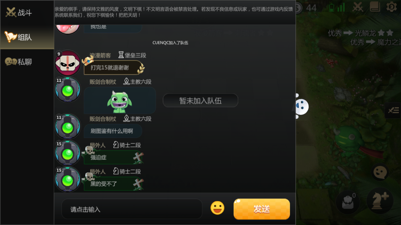 组队的时候进不去组队频道玩蛇