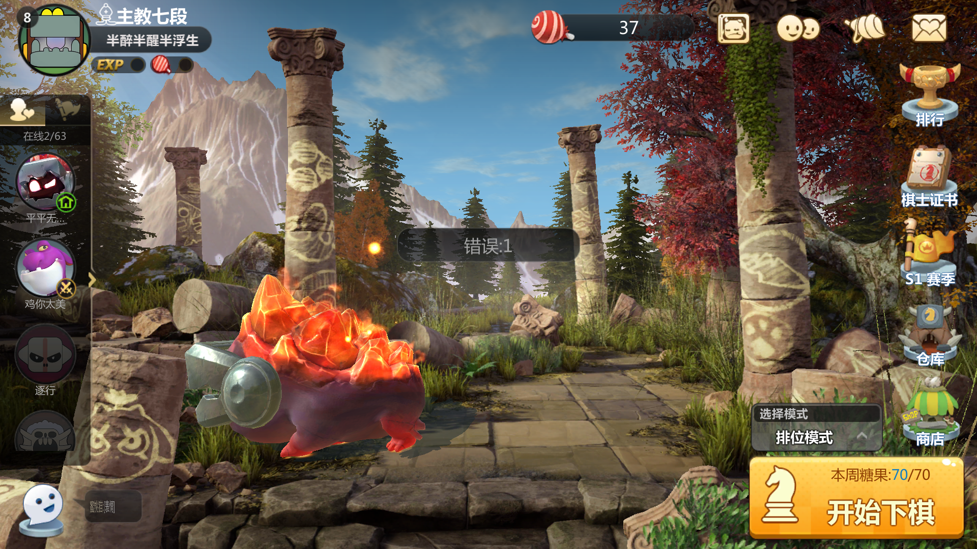 点开始下旗进入排队等好久没反应,在点开始下棋就出现错误1的提示,实际上你已经进入游戏了,退游重进后已经第5回合了。尽快修复啊。