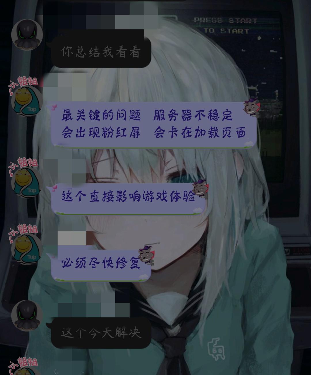 各位!你们反馈的bug!我们这边说了啊!不要着急 过几天就更新了!各位提出的粉红bug 任务太肝 还有抽奖机爆率问题!全部都有回应了!在这里悄咪咪的和各位说下有问题就要提 我们都会和官方反映的!有图有真相 各位请看!