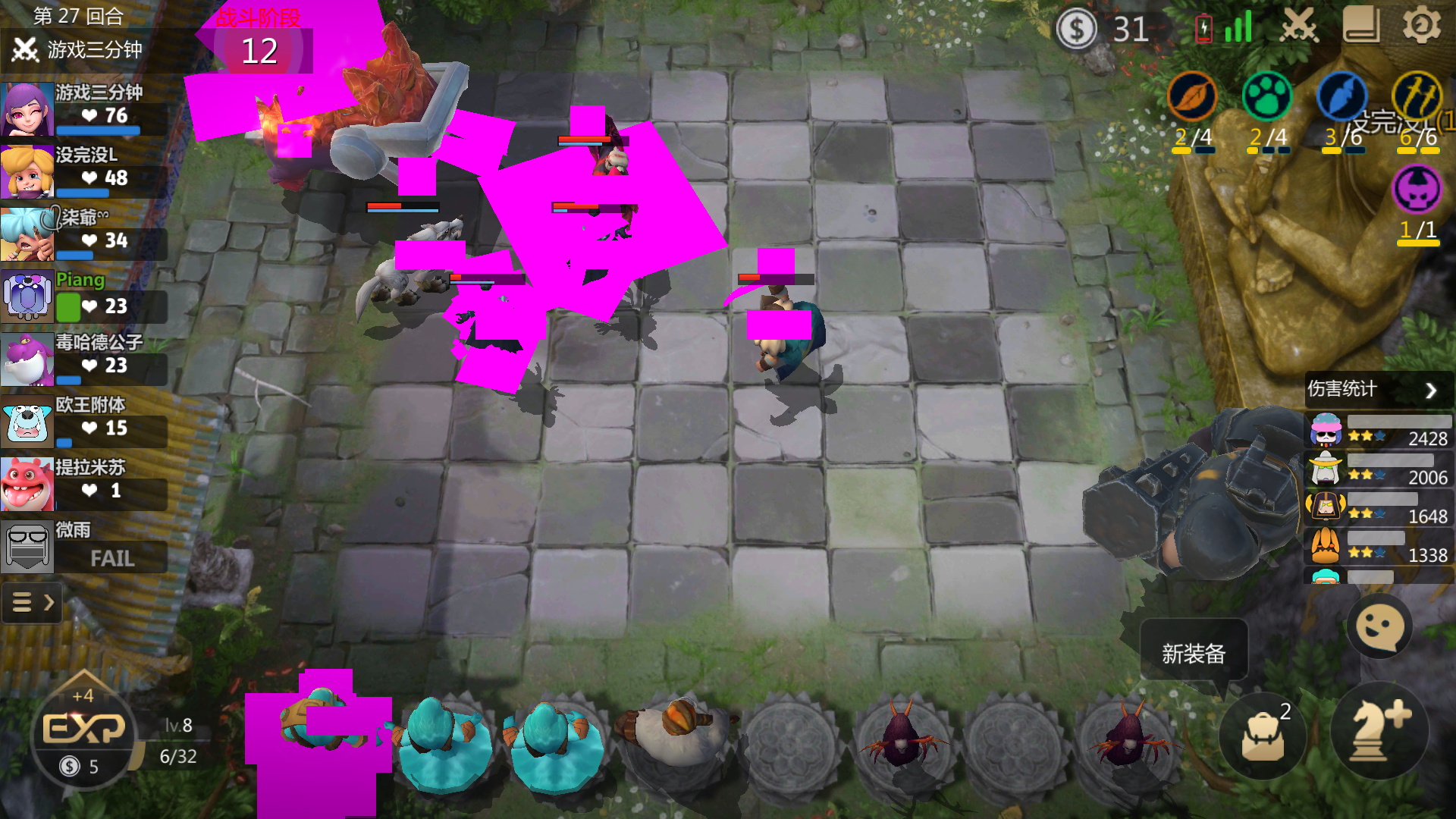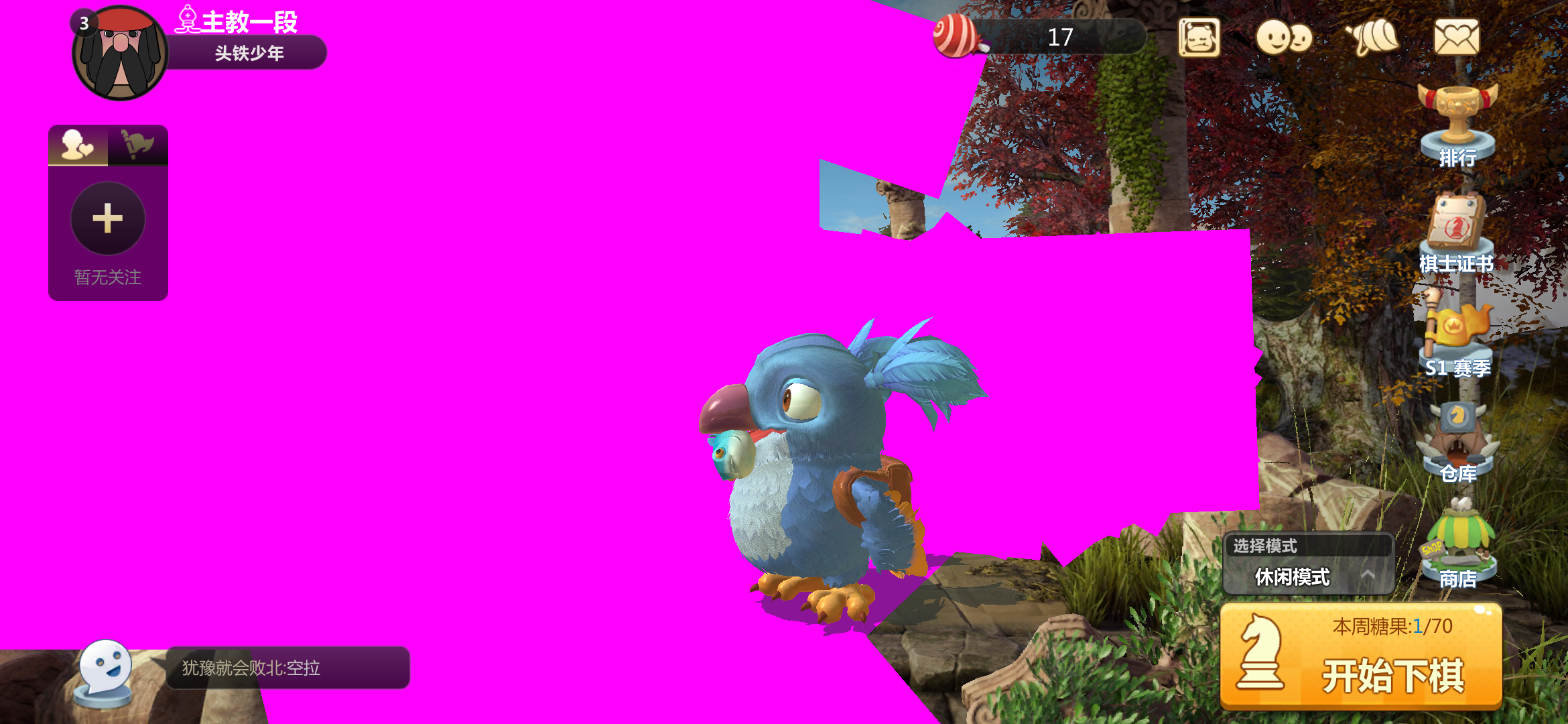 今天打排位,屏幕进入一片粉海,所有特效都变成了瞎眼粉方格由于是排位,被迫精神污染地打到了第38回合眼睛都要瞎掉了强烈要求补偿!╰_╯游戏ID:C9U36G