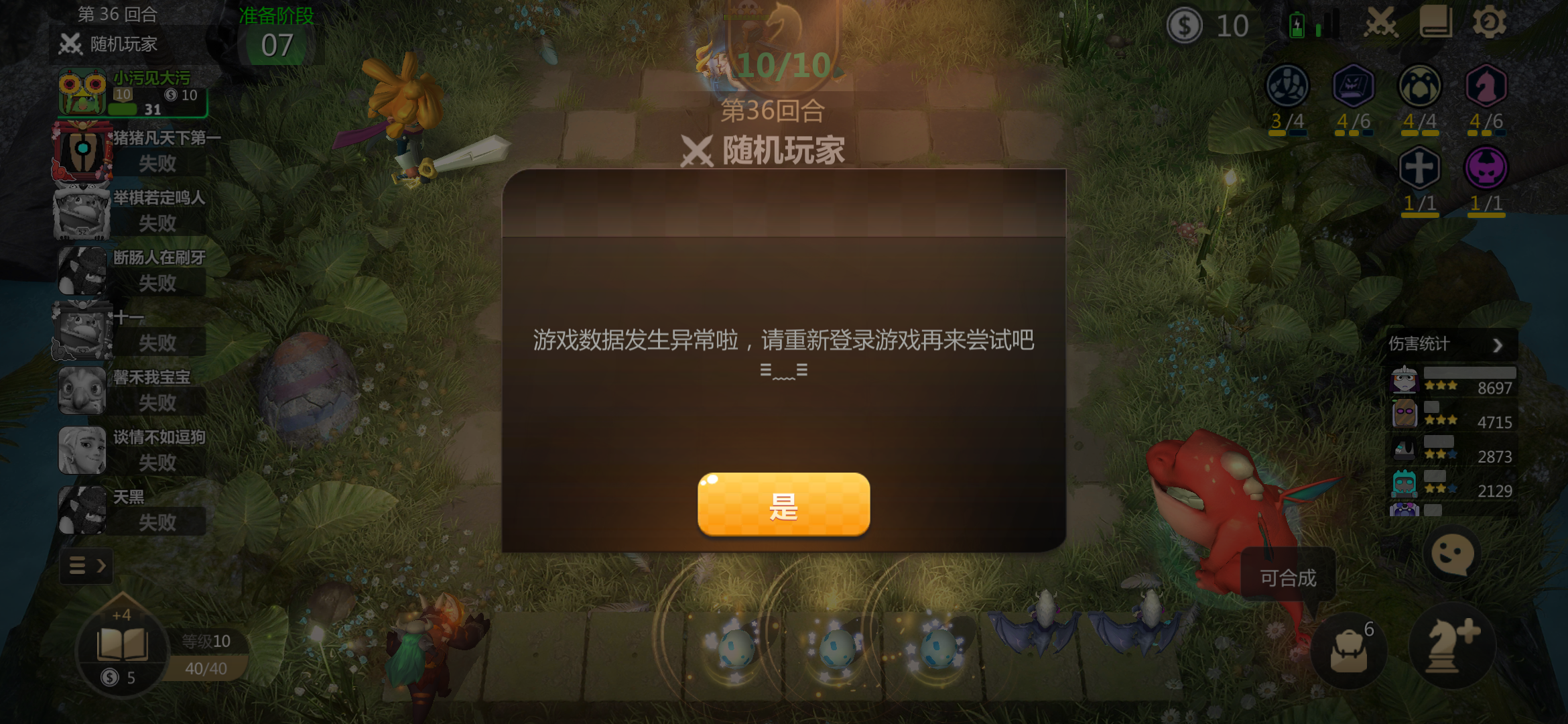 正常打的一局排位,打到了第45回合年兽的时候,一直都很正常我这把打的神法,本来是稳赢的局,年兽也打过去了,我还清楚的记得掉了一个幸运币,可就在第二打完的一瞬间,出了结算面板,我还以为是他没抗过年兽而倒下了呢,结果我一看面板就发现了不对劲我怎么是第二?最后一局我还有30多血,他仅剩3滴血,就算是我没打过年兽也不能直接死掉吧?我不知道这是游戏bug还是正常的游戏机制,也不知道是不是对面开了什么外挂