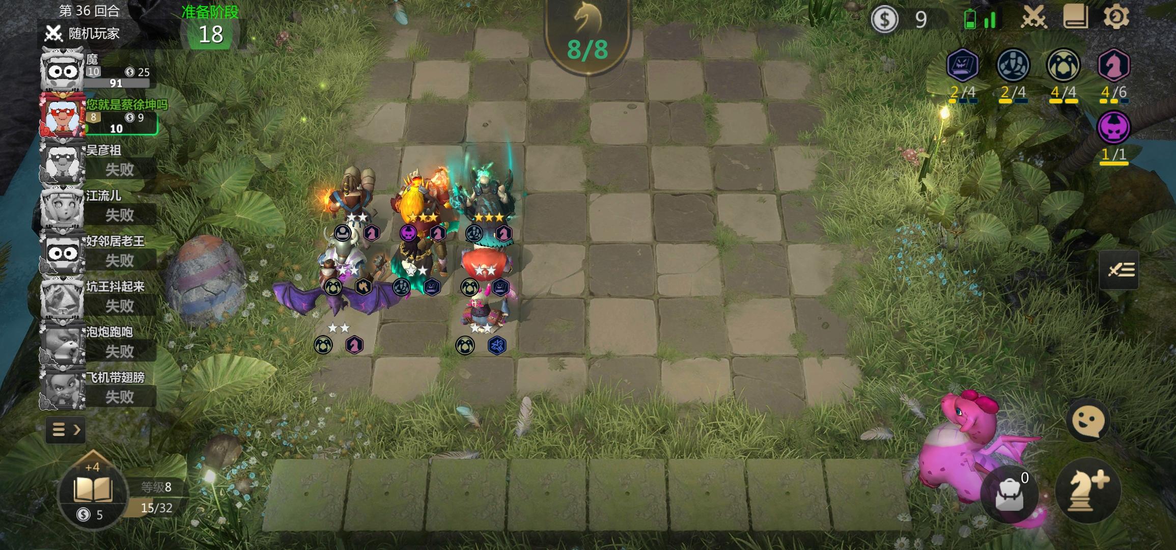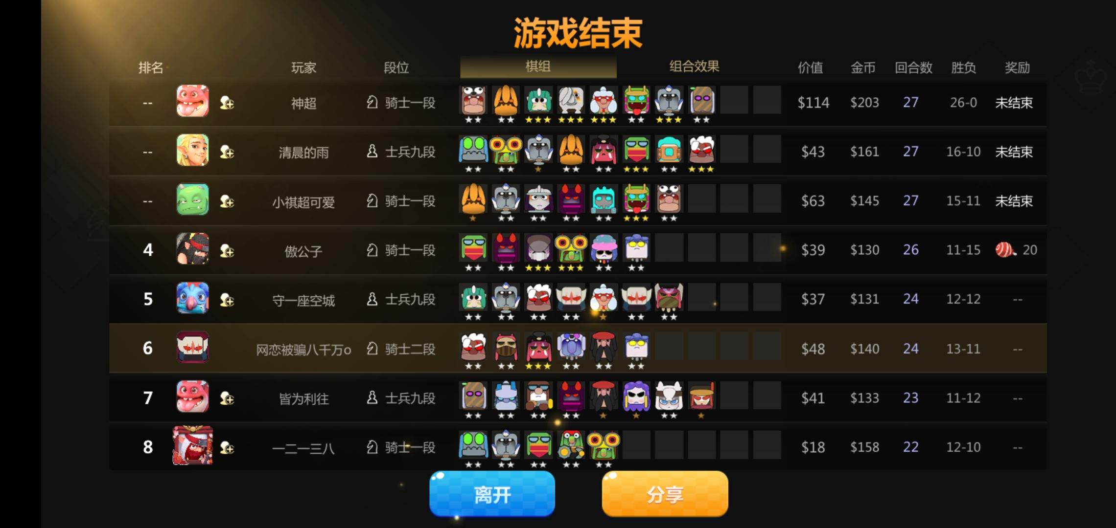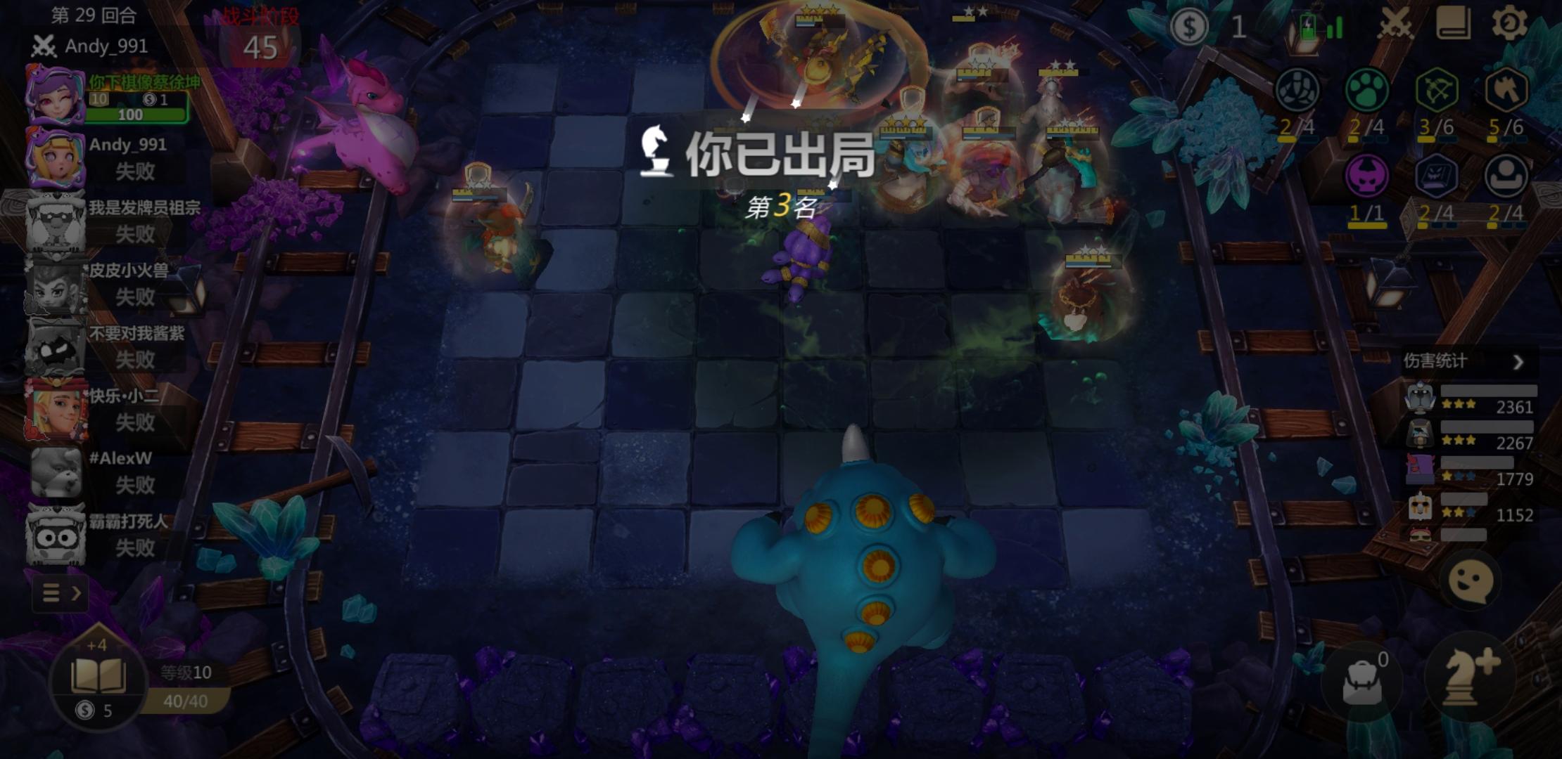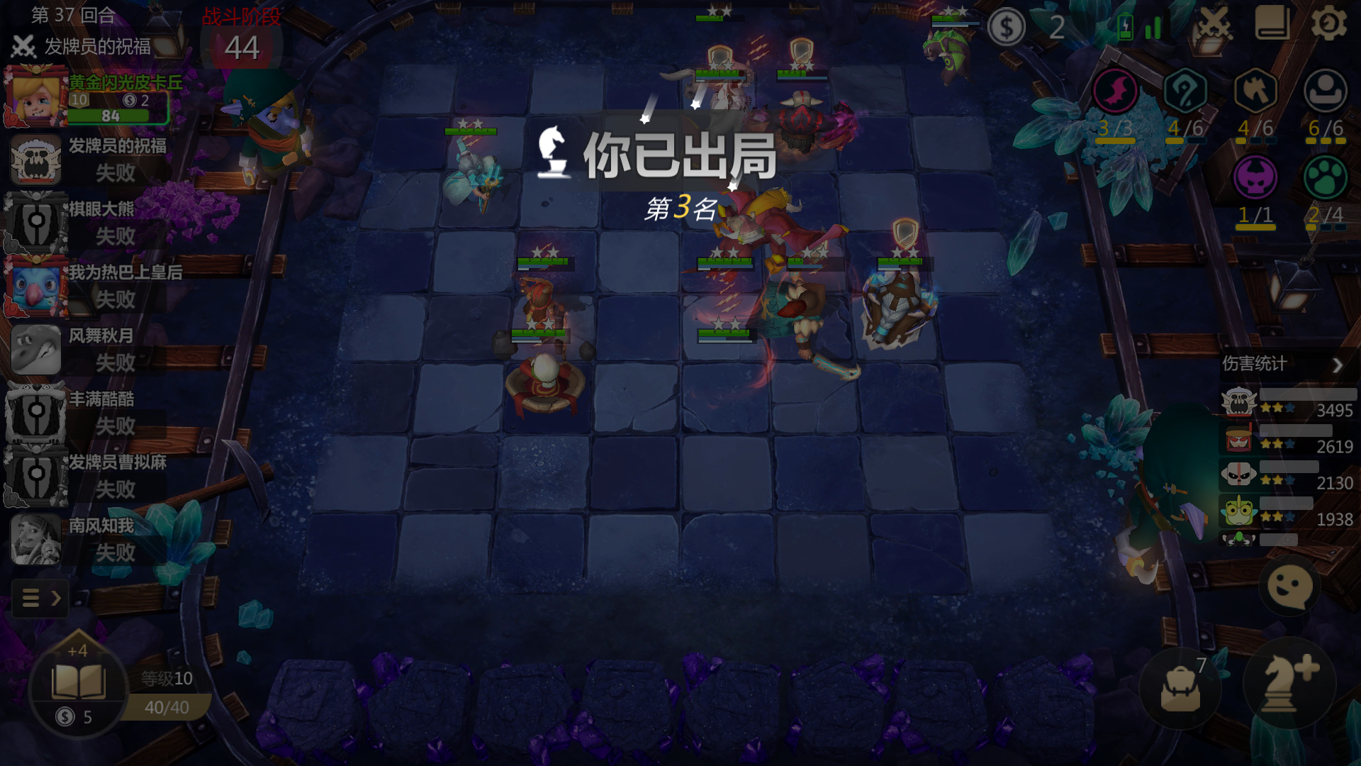 这系统有毒?第一名德鲁伊三星压制,连着三回合遇到第一名,直接给我打没了,50血三回合就没了,一回合扣20血,结算一看我就上阵了六个棋子?特么我还有一颗棋子被吃了?羁绊就两个,我醉了