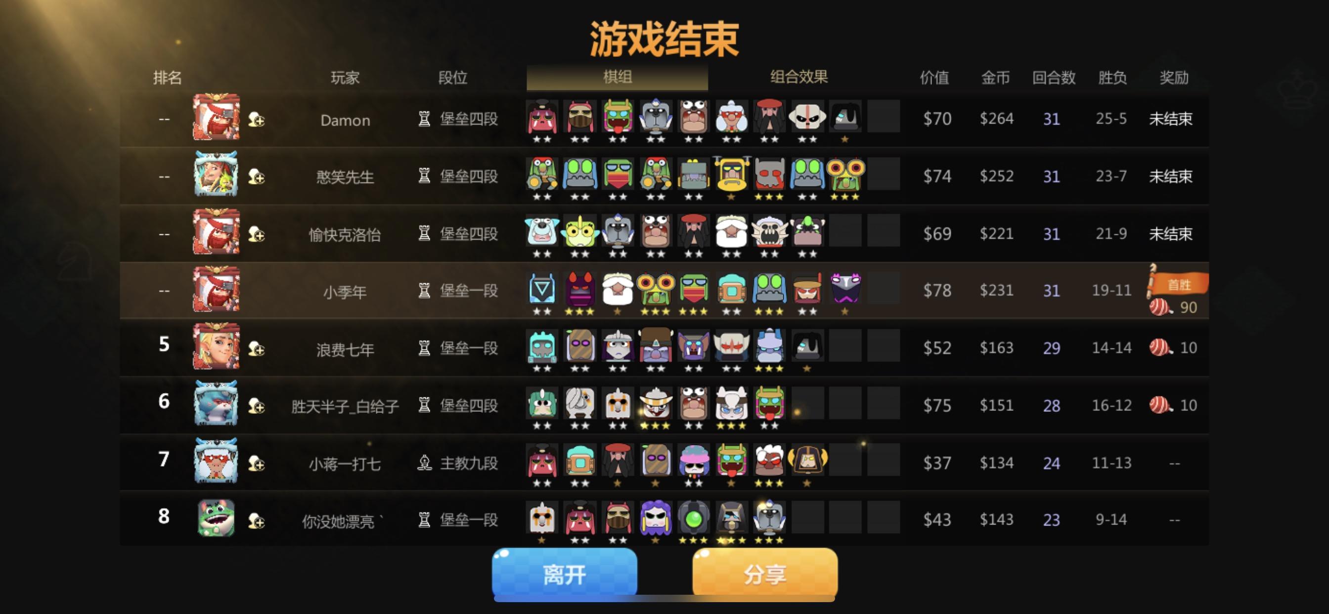 结算出错误了,我明明赢了我看第一个着然后我赢了,结算说是我获得了第二,第一我然后退出去还是第二。你不要说我的阵容打不过第一。
