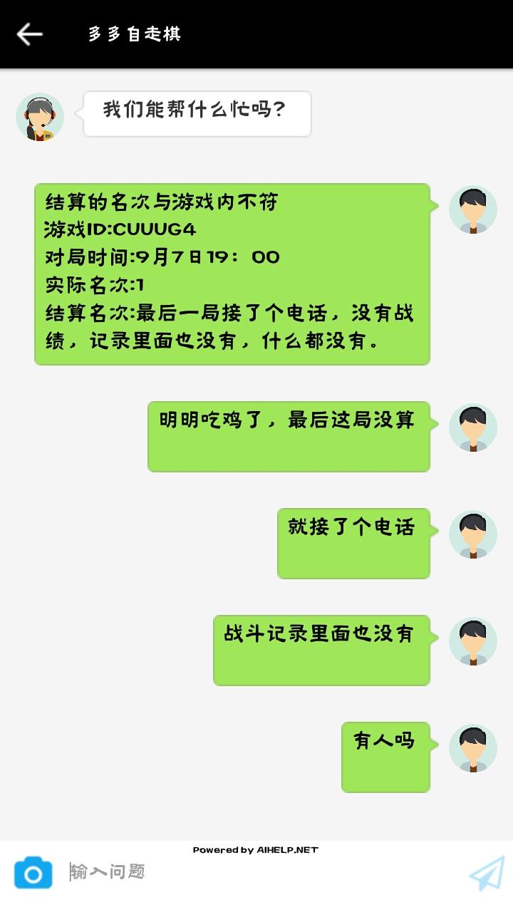 连续两把,原本已经吃到鸡的局,吃鸡之后游戏结算卡顿,退出重新登陆以后直接结算判断我负?两把都是本来可以上国王的局,和客服反馈客服理都不理,我不知道这样的游戏官方是怎么看玩家的,难道就因为你是测试版就不用估计玩家的游戏体验?我玩了那么久的游戏第一次遇到那么恶心的操作!