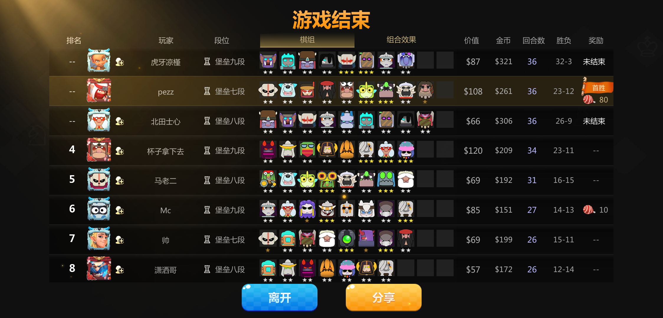 游戏名次与结算名次不一样