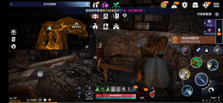 消失的暗影蛇发现地,参照我左上方小地图,桌子上就是任务发光点。