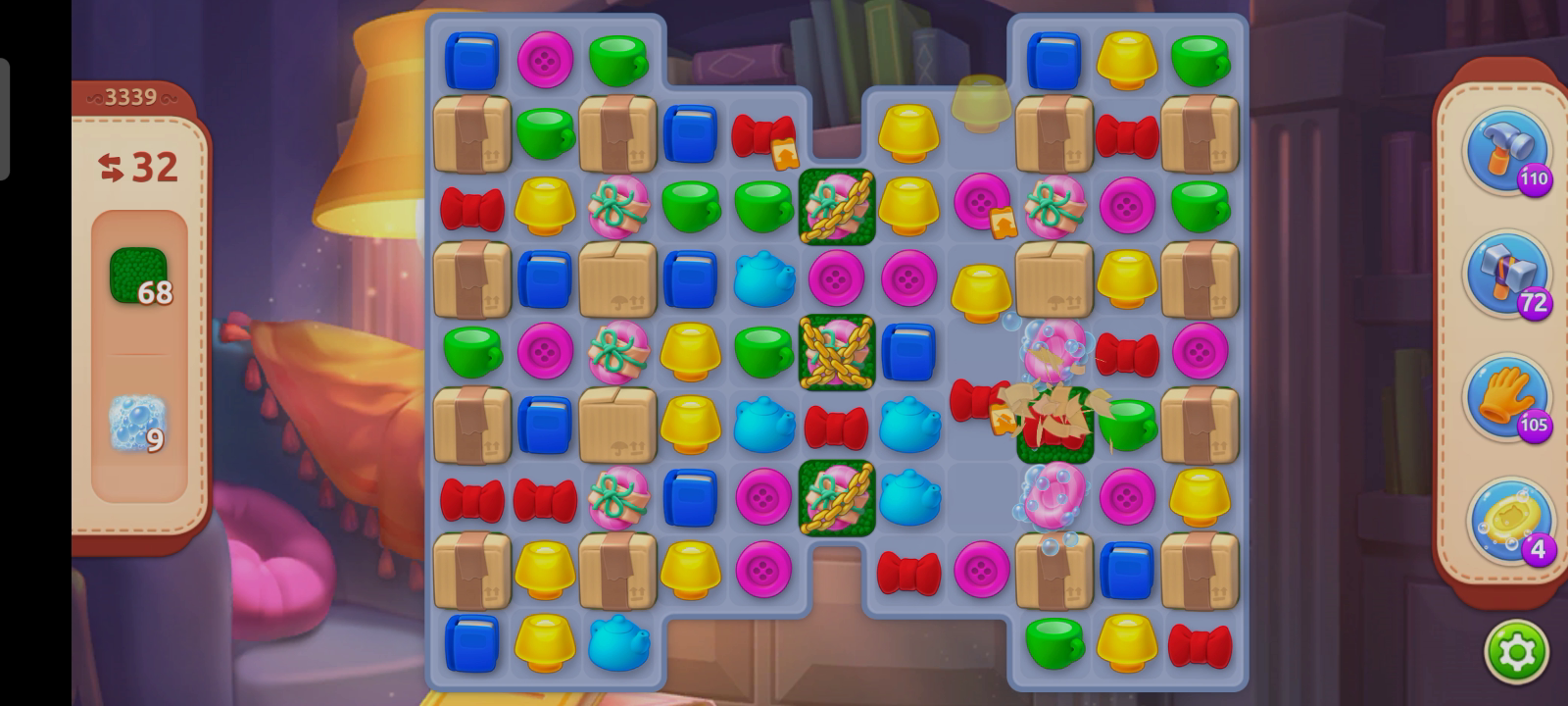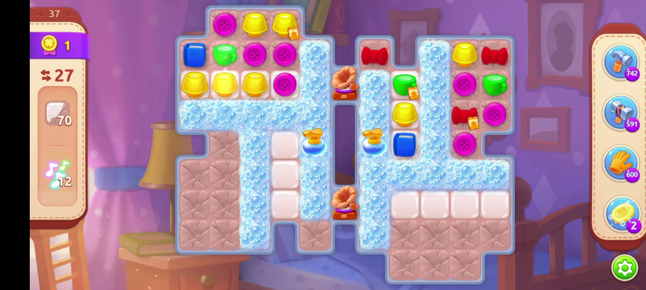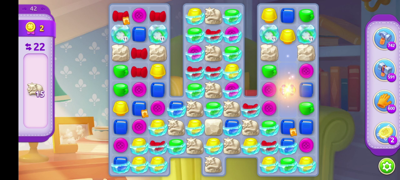 关卡目标:草坪43关卡步数:34关卡难度:一般关卡障碍物:泡沫,木箱攻略截图新的障碍物,紫色浓稠泡沫,就像我们平时用的肥皂一样,不及时冲掉,泡泡越来越多,关卡里面也是一样,不及时消除,越蔓越多首先还是利用匹配元素,把木箱先消除然后多凑横纵火箭或纸飞机,不仅可以快速把泡沫消灭,还可以铺开草坪,要是能凑彩虹球匹配火箭或纸飞机,再好不过用了10步,泡沫基本消除,同时,任务目标也完成大半