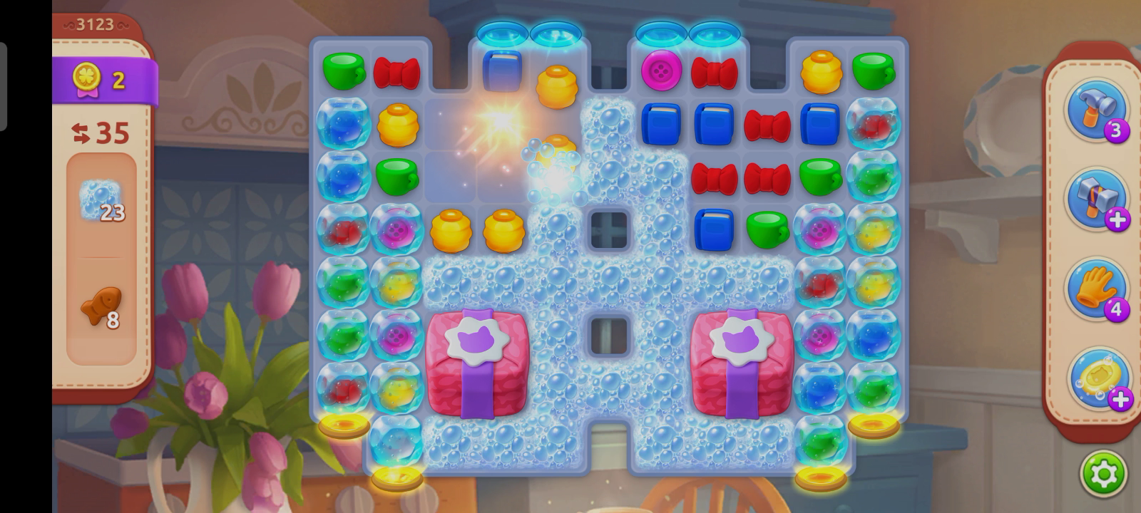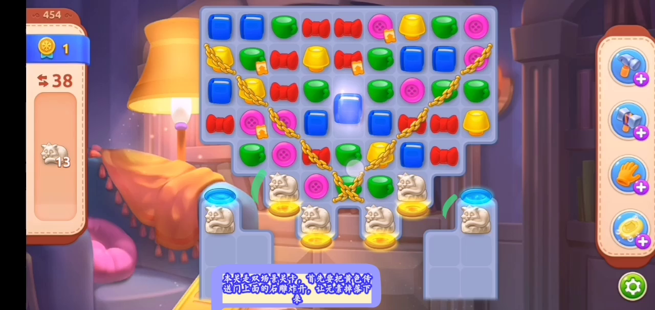 第3742关攻略【障碍物】蝴蝶结,纸箱【通关要求】15个音符,10个水桶【步数】29步【难度系数】普通难度关卡【游戏攻略】从布局看,第一眼会觉得本局复杂有难度,其实只要梳理一下,过关没问题。本局有2个彩球福利,消除蓝蝴蝶结就可以让彩球靠近。主要障碍物是纸箱和蝴蝶结。蝴蝶结靠近集中消除一个节点就可以使整条蝴蝶结消除。纸箱靠近消除即可,使用加速道具可以快速消除。过关目标是水桶和音符:1