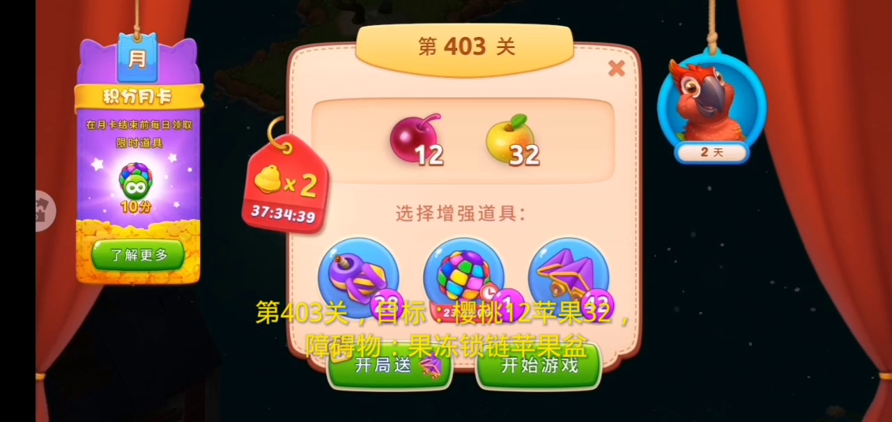 关卡目标:蓝宝石70.道具23关卡步数:32关卡障碍物:箱子、冰冻和围栏关卡难度:一般攻略截图可以看出,目标蓝宝石元素都被箱子围栏围在了中间,而且还被冻住,要想收集目标元素,首先要把障碍物清除,释放蓝宝石,利用惊喜盒旁边的元素,打开惊喜盒惊喜盒打开,真的惊喜满满,都是道具,利用炸弹和火箭加速道具,可以上下炸开左下角还有5个惊喜盒,点击纸飞机打开2个惊喜盒,里面给出的道具继续炸,这样一