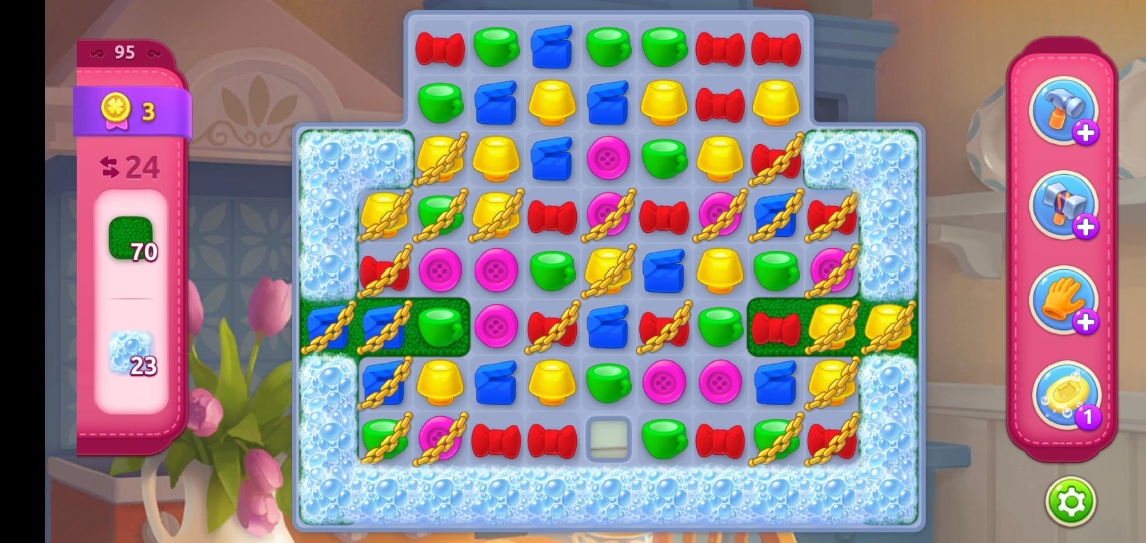 嗨,我是Nancy,我又来了,草坪元素这会应该躲着我吧听见我的大名是不是瑟瑟发抖呀关卡目标:草坪70、泡泡水23关卡步数:24关卡难度:超高难度关卡障碍物:锁链关卡截图咦,草坪学聪明了,居然叫了这么多帮手,看来,今天这关有点棘手花了10步,草坪没有解决多少,居然泡泡水还增加了,看来,是我小看了这个泡泡水,居然会移动还好,彩虹球老大带着纸飞机来了还好,彩虹球和纸飞机✈️会面了,接下
