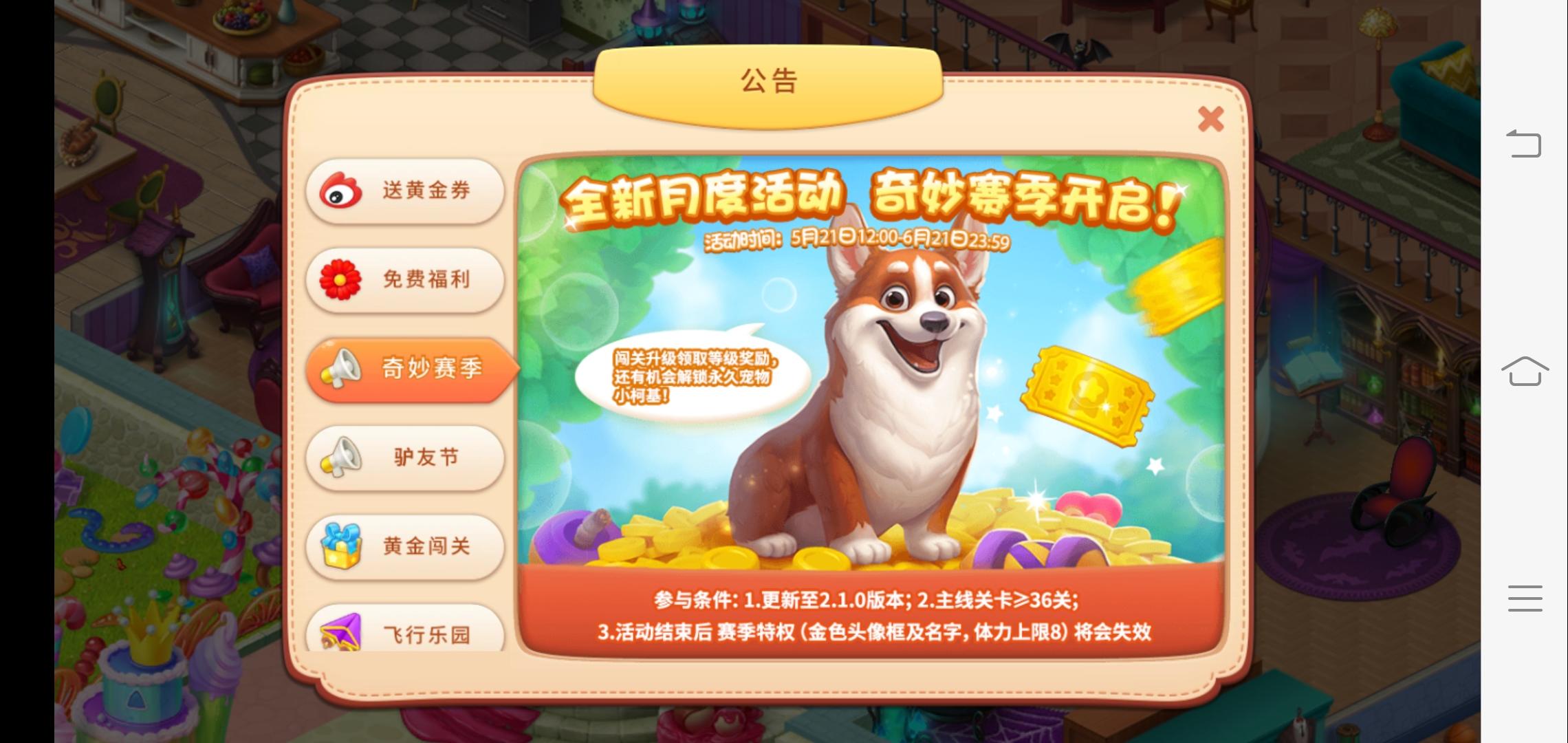 大家周末好,梦幻家园全新月度活动『奇妙赛季』火热开启。这次的活动又是一个超级给力的惊喜哦!奇妙赛季和梦幻花园近期出的俏狐之季是非常的相似。只要积极参与活动,闯关成功并且达到每个等级的分数要求即可领取不同等级的奖励。那么奇妙赛季怎么玩呢?首先在活动时间内,每成功通过一个关卡都会有分数奖励。但是呢,高难度关卡或者首次闯关即顺利通关的,都可以获得双倍的分数。超高难度关卡通关后会获得更高的分数哦!活动分