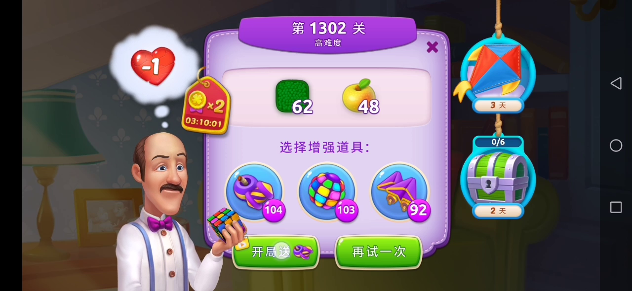 正常应该是看完广告直接送道具开始下一关。但是如题,看完广告后,又回到了关卡页面,点广告的选项一直没反应,再点【再试一次】又是没送道具地开始了。白白多看了好几次广告