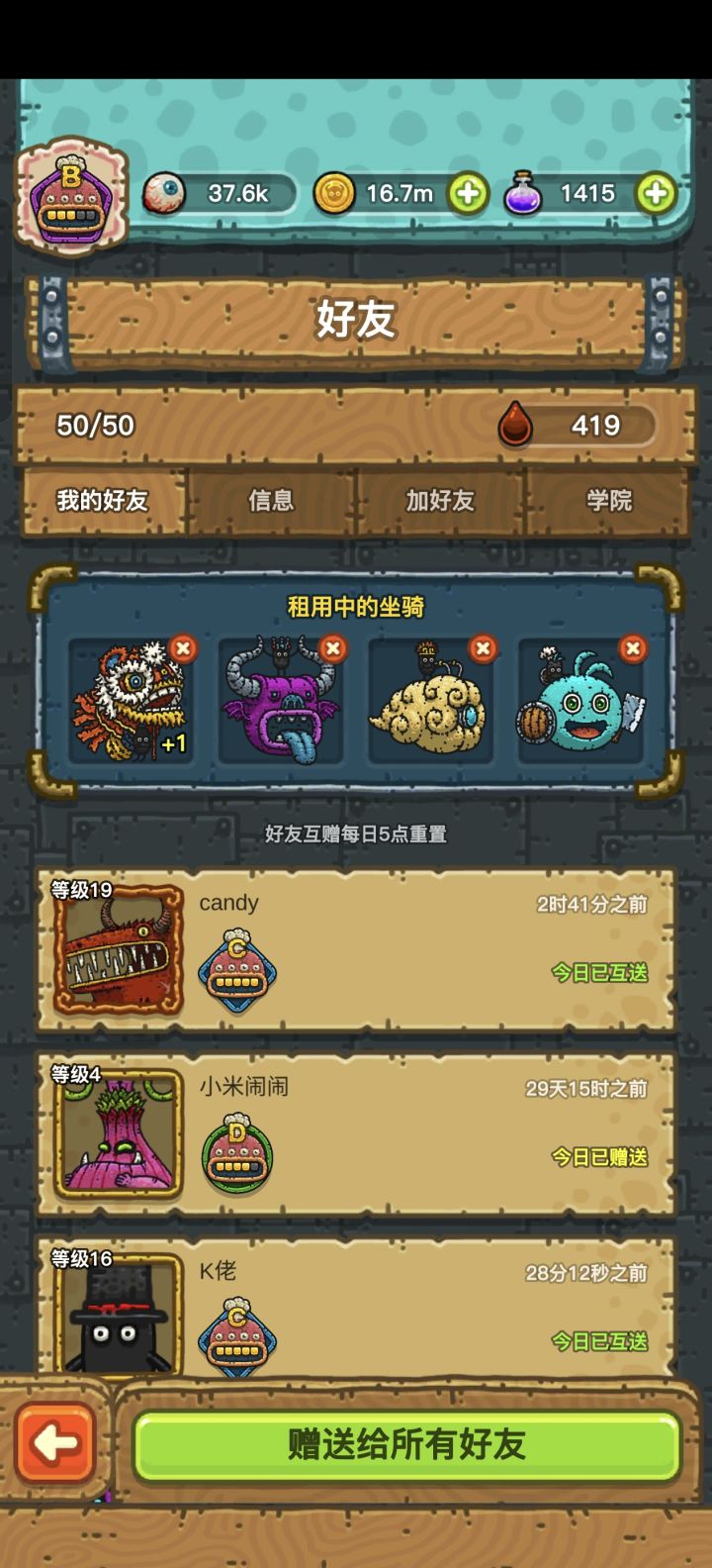 招学徒,有好友位长期互油,有满级次子,狮子,兔子,玫瑰