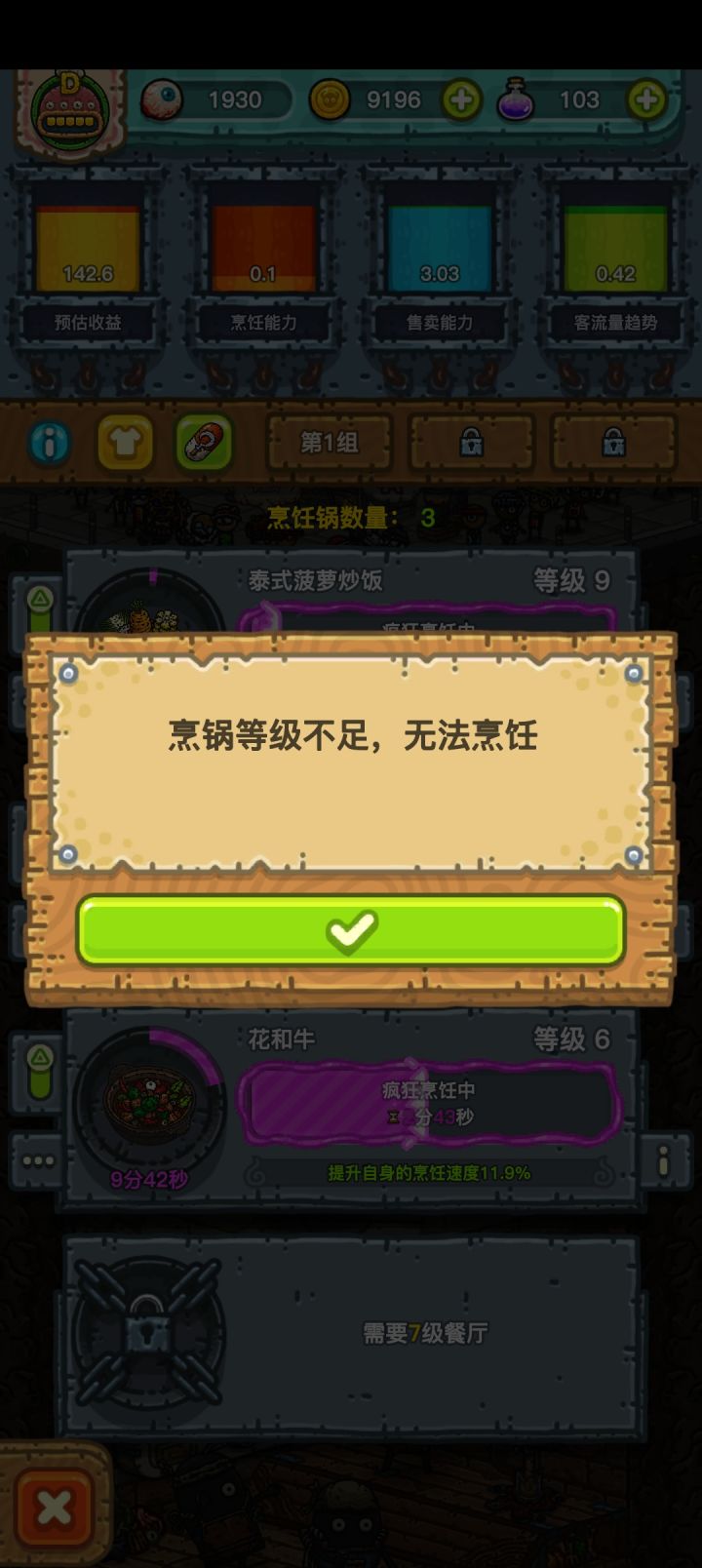 游戏的经营规则一点都不清楚,烹饪一个菜品需要几级烹锅也没有写清楚,导致只能无脑升锅。还有一个要吐槽的点,几年了都没有更新好。探索的时候点不到,明明几年前就有人反应了,游戏居然一点都没更新。