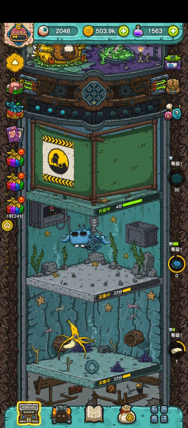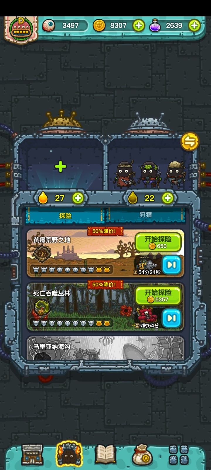 上线最喜欢看到什么,当然是离线收益啦~所以当我注意到我的金币当我从k到0时,我就觉得不对劲,我的金币去哪里了,我热乎的金币呢,一开始我以为是bug,忍了,今天我才发现,好像是自动探险这个东西也要钱的,只不过我老是探完直接下了,一直没有留意过金币悄咪咪的溜走了,我还以为有👻偷金币,就是说尴尬了接下来是正经提问了1.紫色的灵石是干什么的2.呕吐物卖了是给金币吗还是