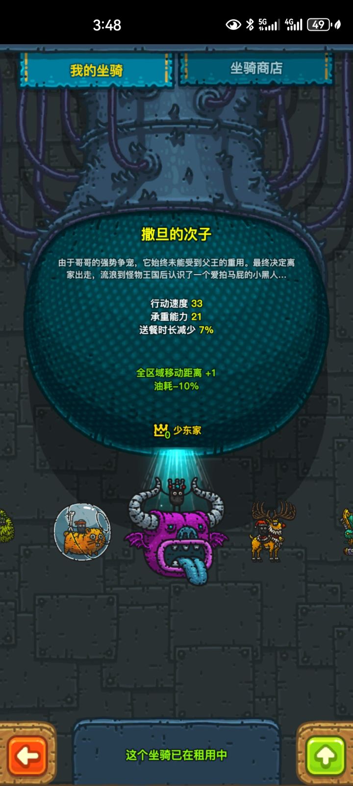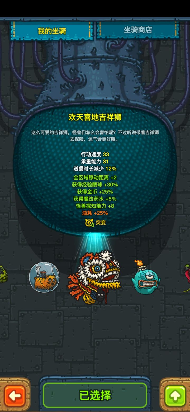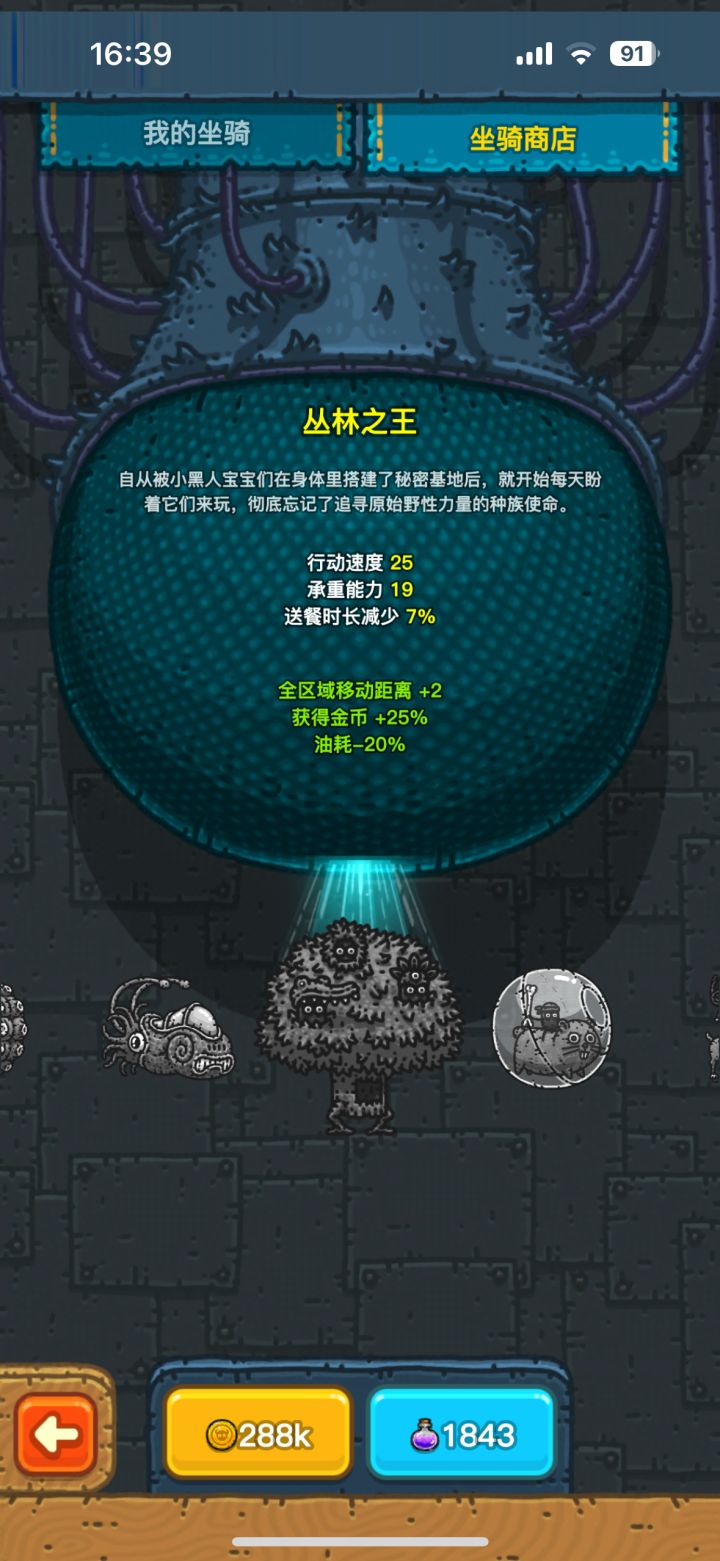 全地图最适用的坐骑首推冒險者岡布奧。尤其是到了越后面的图,格子的数量越大,需要很多电力来保证能抓到,要不然通常抓一次怪要看1-2次广告来回复电量。冒險者岡布的奧天賦異稟是抓捕的電力增加,它的电量比其他的坐骑还多,所以会撑比较长的时间。它的速度還算快,不管是新手还是老玩家都非常适用的一个坐骑。