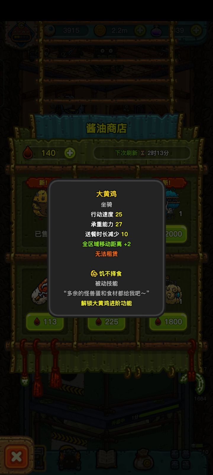 如题,买了大黄鸡说解锁饥不择食