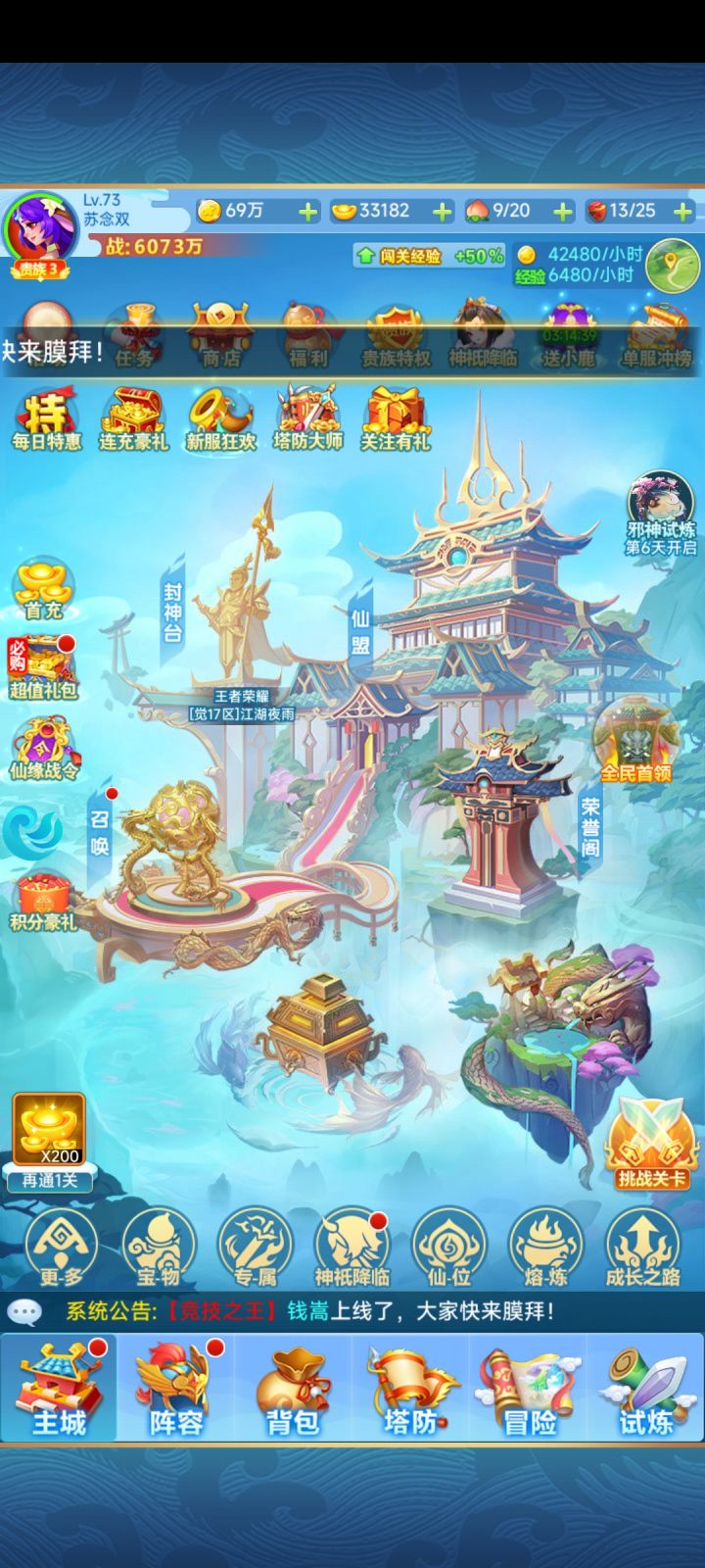 第一天进区跟着新手任务来到16级成长之路晋升一次领一次奖励,不要奖励没领一直晋升综合资源礼包选突破丹第一天加满好友赠送领取体力20vip专属礼包购买vip每日福利领取,元宝购买一次,云游、猴儿酒、体力不要上限不然等级落后云游6分钟恢复一次,等级上去会增加云游上限次数,猴儿酒和体力半小时恢复一次阵营建议新区阵营推荐天神天将、灵感大王、青鸟、九凤、小白龙敖丙、二郎神、紫霞、后羿、老君