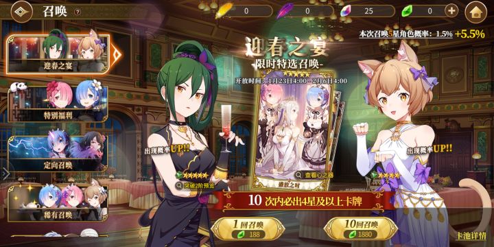 我在召唤里面没有找到幼拉幼蕾的卡池,但主界面活动面板能进入幼拉幼蕾的抽卡池,而且看图右上角,别的卡池都没有加概率,就这个加了,说明这个卡池应该是个bug…吧……可能要删这个池,但没删干净?看我正常卡池再看进去的幼拉卡池莫名增加10.5%,如果是福利,请当我没说,如果是bug,请尽快修复