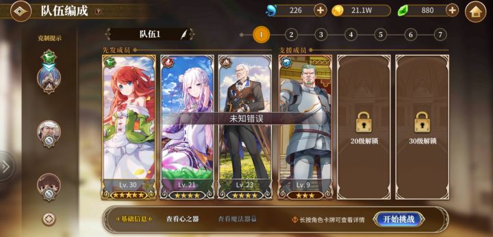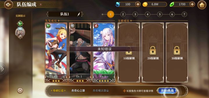 第二章节第一关卡剧情跑完,跳到队伍编成,然后按开始游戏就显示未知错误