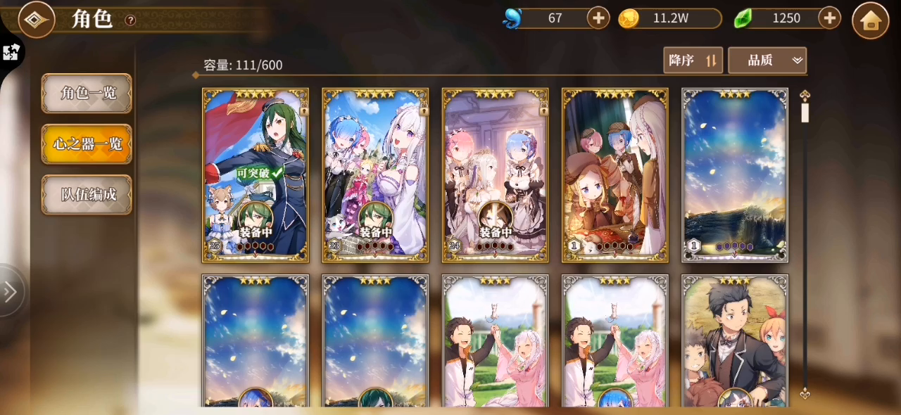如图,我鬼蕾姆带了身为支援角色时会加1000的怒气的心之器,结果进去诶我黑切呢(错乱)。如果将这零怒气加到1000我将绝杀,可惜换不得。