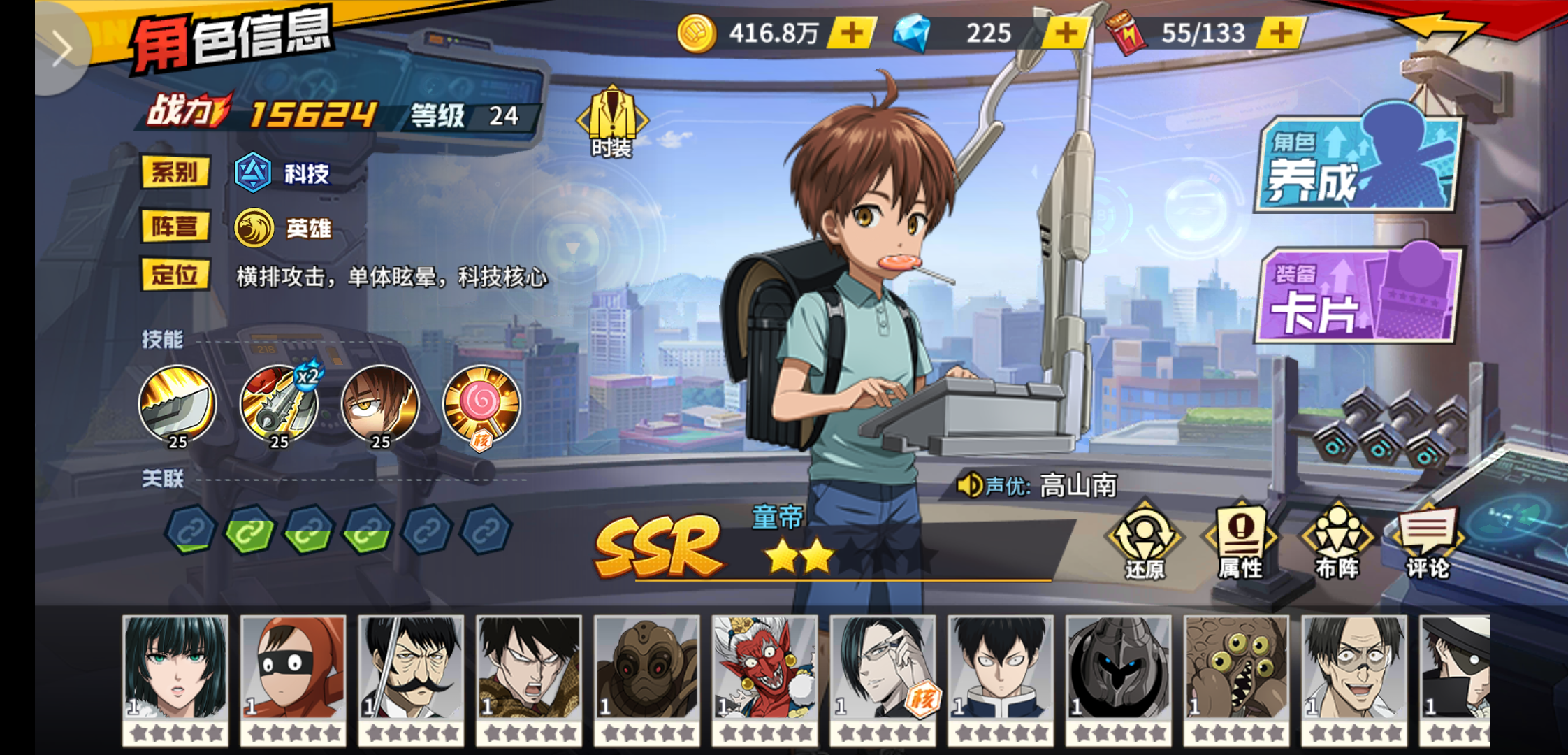 要问《一拳超人:最强之男》手游众多玩法中哪个能获得升星卡、技能书、专属经验卡等丰厚奖励,那必然是每名玩家每天都必做的项目之一——基因研究所。随着游戏时间的增长,大家的角色越来越强,有一些小伙伴已经通过了基因研究所的全部关卡,可仍有一部分小伙伴会卡在某些关卡上。合理的搭配阵容与拓展卡,可能会收到意想不到成效哦。今天小编就为大家简述一下基因研究所的通关策略。1.基本玩法基因研究所共有8层,每层12