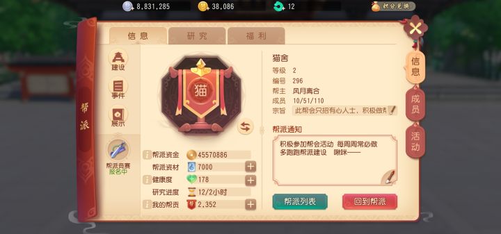 一舞飞天欢迎新朋友老朋友入住本帮派,刚开服的时候前几个大帮都是托,实属吓到了,后来找了几个志同道合的朋友一起叛逃,创建了自己的帮派,经历了一段时间的经营后,也是正常运作起来了,人数虽少但都是顶呱呱的好成员,每天都会一起在帮派语音里吵来吵去,要是有喜欢这种日常系的帮派的,欢迎来猫舍,收留各种被抛弃的小可怜哦[嗒啦啦2_抱抱][嗒啦啦2_抱抱][嗒啦啦2_抱抱][图片] 风月是我的情缘,在另一个帖子里