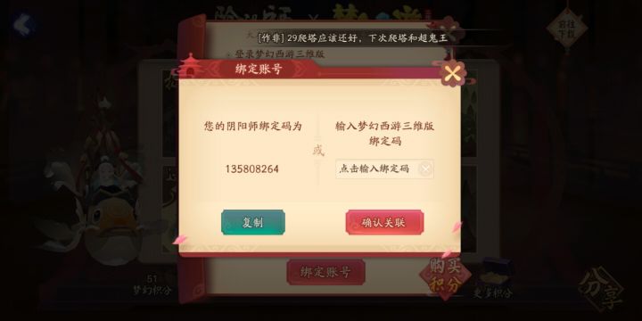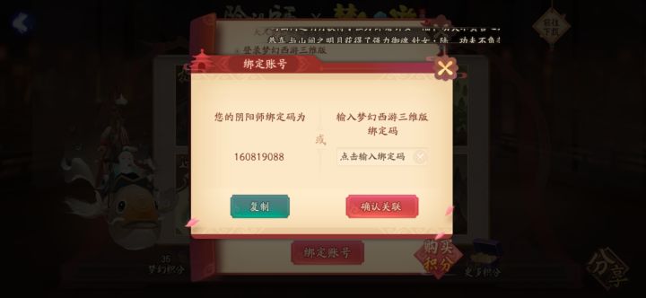 求联动互绑,我这是阴阳师的。求个梦幻西游的码