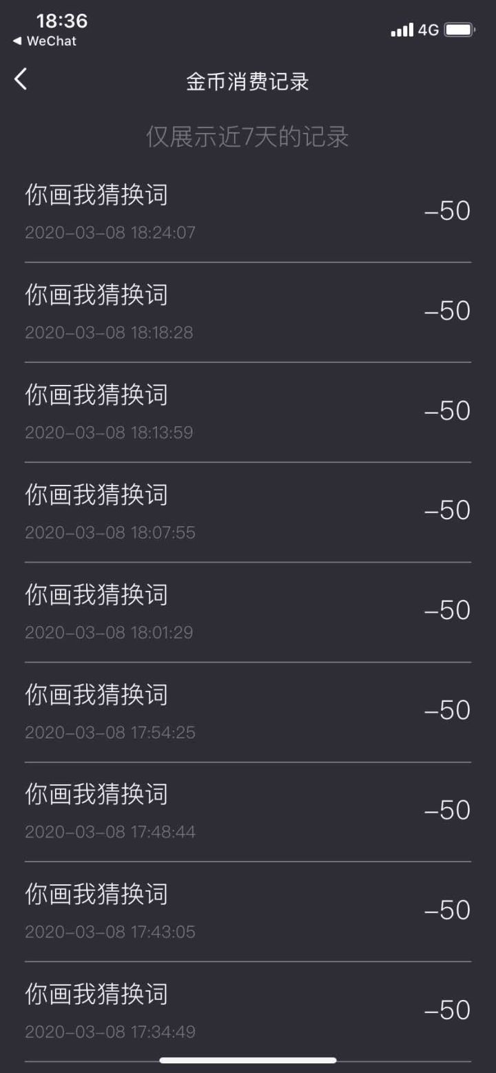 别的板块你们估计看不到,更新后画猜不换词玩一把扣50金币,旧版没事。都是我和小伙伴的截图旧版不扣,下面看图