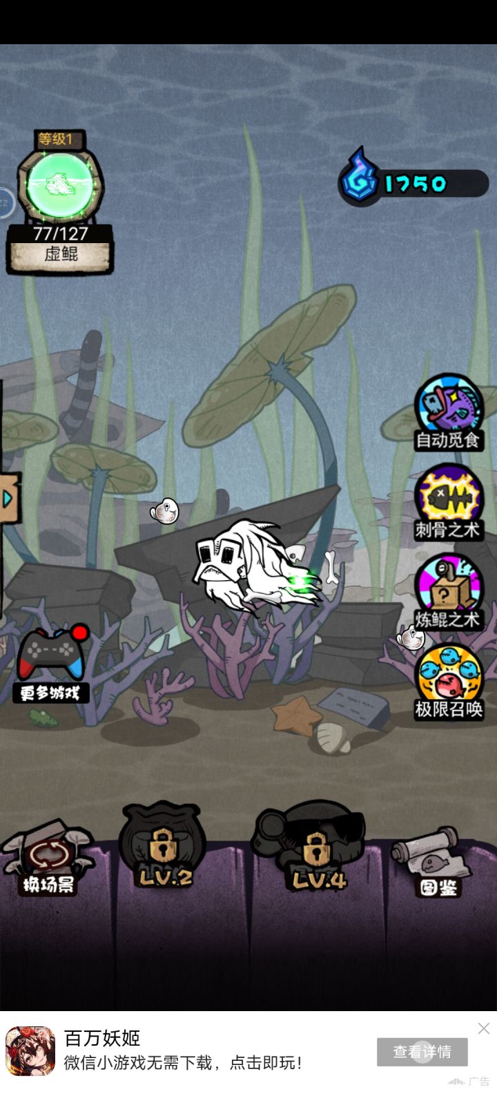 我是来玩异鲲的结果就给我来一个?26的变异率假的吧还有那个自动吃,一直在面,下面全是鱼就是不去看得我脑袋疼