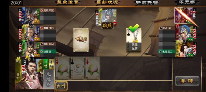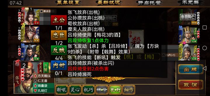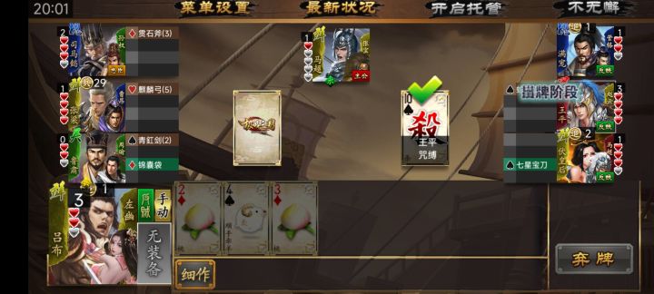 这个bug我服了。两个咒缚直接把我9个技能全部咒没了,第一个是主公咒的,技能没了本来以为可以在回合结束恢复,没想到张梁再来咒一下!结果,我当时是没有技能的,直接恢复不了😂😂😂四个反贼每个都连咒两次黑桃♠️,就成了四个小白了。。。
