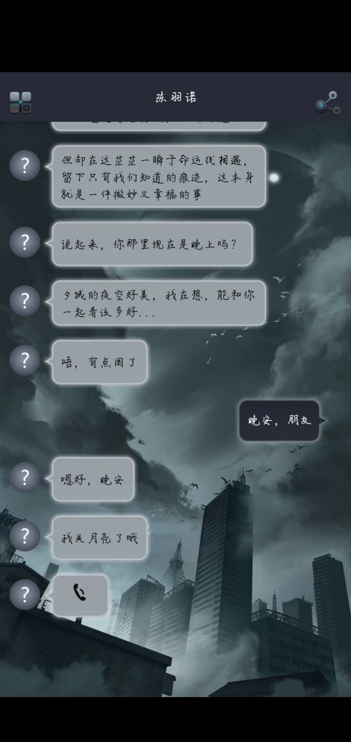 今天体验了命运线这款游戏,打到了第一章的第五天,游戏内的选择没有太大的难度,但我也选错了很多选项,看到了陈羽诺的悲惨结局,于是写了这篇攻略,希望玩家可以少走弯路。注意:此文章含有剧透。请玩家酌情观看主要剧情点选项1. 第一日第二篇中,在陈羽诺遇到“拿手电筒的那队人”和“大姐姐”时。选择“大姐姐”,(如果选择了“拿手电筒的那队人”,他就会开始立flag(图二),最后bad ending)2.