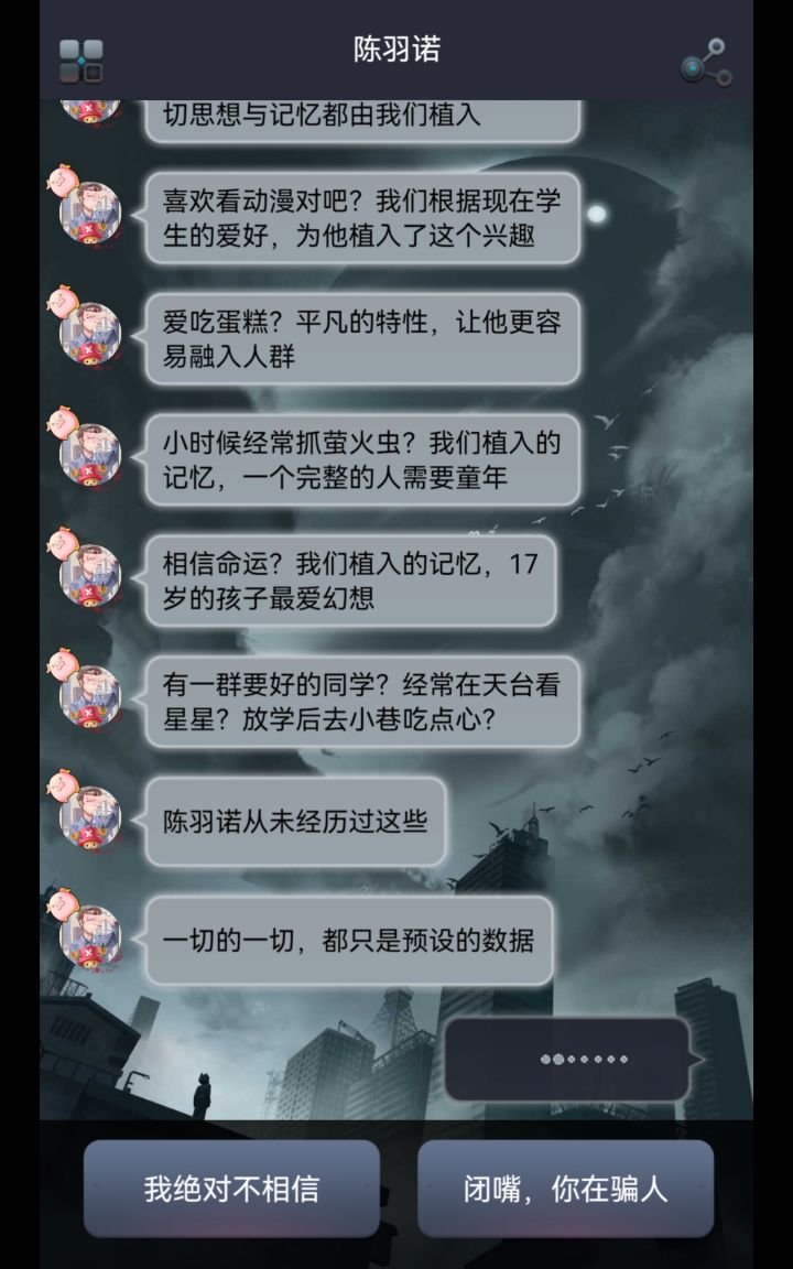 好无语,为什么不相信,我就相信啊。为什么没有相信的选项。