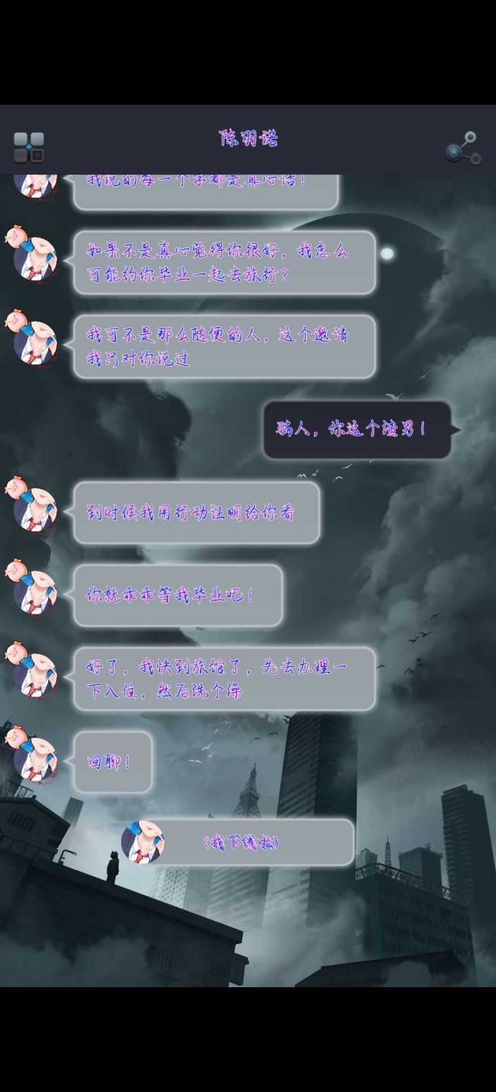 哎,就很矫情,说这些,勿喷。 但是,这是属于游戏里的“我”的看法,“我”是一个很自私的人,“我”不理解为什么是他,为什么不是别人?哪怕这次牺牲了他,下一次会不会再次出现这样的事,十年,二十年,一百年后,都有可能!而,这也不能否认以前也是这样,牺牲一个人保护大多数人!并且这也不能明确的说明陈羽诺真的死了,他可能是重生,可能是忘了“我”,开放性结局皆有可能。