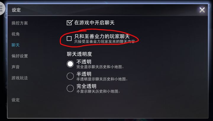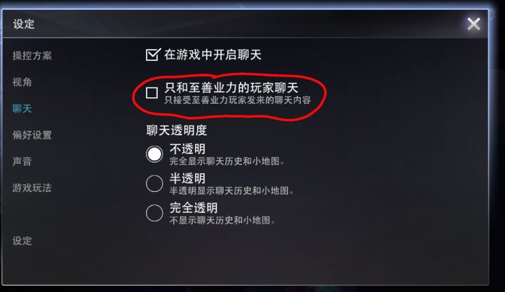 你们玩游戏帅哥美女们,一定要在设置里把至善聊天取消掉,要不然你们看不到你队友发的消息。你只能一个人在那里自言自语。