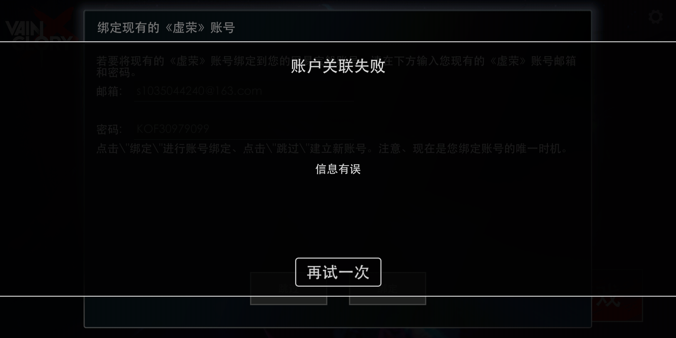 怎么搞的以前用手机账号登陆。。现在要绑定邮箱老是提示信息错误