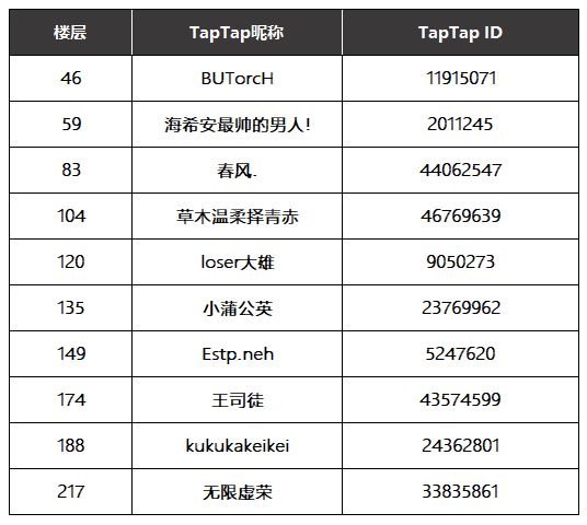 虚荣4.9新版本,TapTap社区活动已经完美落幕啦!感谢各位的支持和对虚荣的喜爱。我们选择出了如下10位,每人将获得888ICE。请获奖的小伙伴主动添加领奖QQ:1614113764,提在验证信息中写明【TapTap领奖】,并主动提供自己的Tap ID+国服账号(优先邮箱,其次手机号)+游戏昵称,12月12日还未提供的视作放弃,奖励将在搜集完全部名单后的15个工作日内发放到游戏账号内。没有获