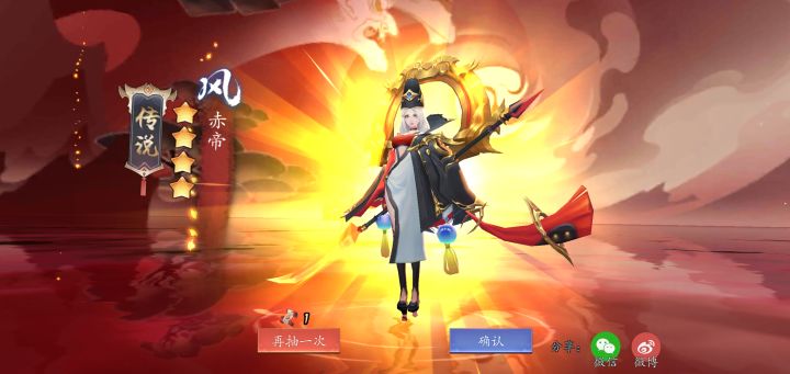 讲道理这个游戏我是不信可以抽到传说的,直到今天半价10连出了传说,刚开始跳出来一个赤帝,等结果出来以后,竟然有两?白嫖党现在一共才四个传说,今天出的两。大概是转运了。